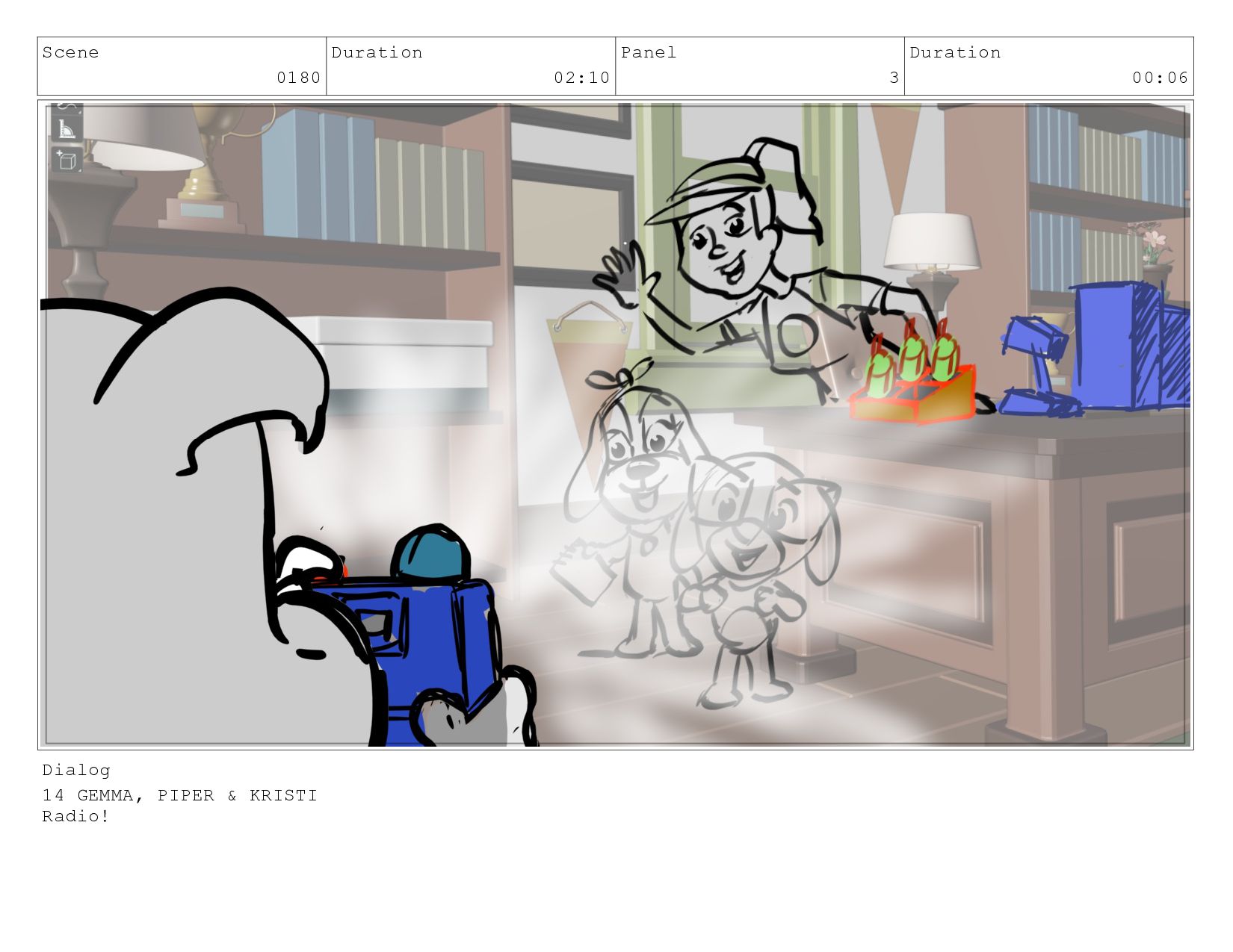 Scene 0180 Duration 02:10 Panel 3 Duration 00:06 Dialog 14