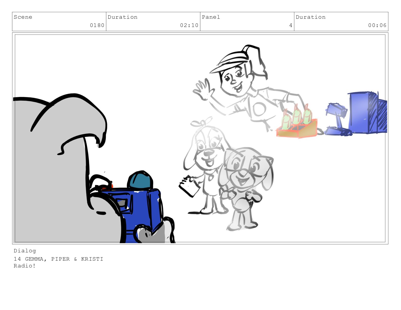 Scene 0180 Duration 02:10 Panel 4 Duration 00:06 Dialog 14