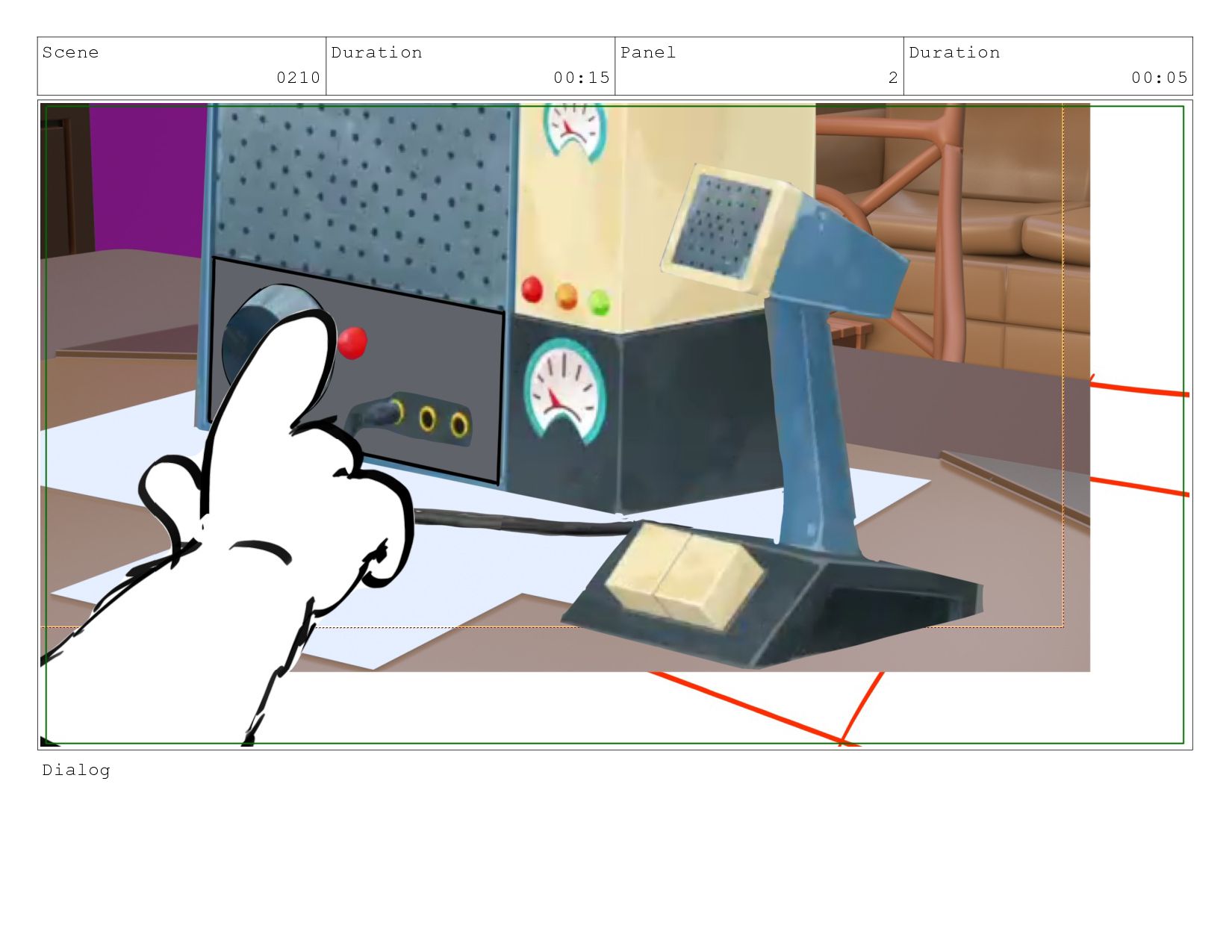 Scene 0210 Duration 00:15 Panel 2 Duration 00:05 Dialog