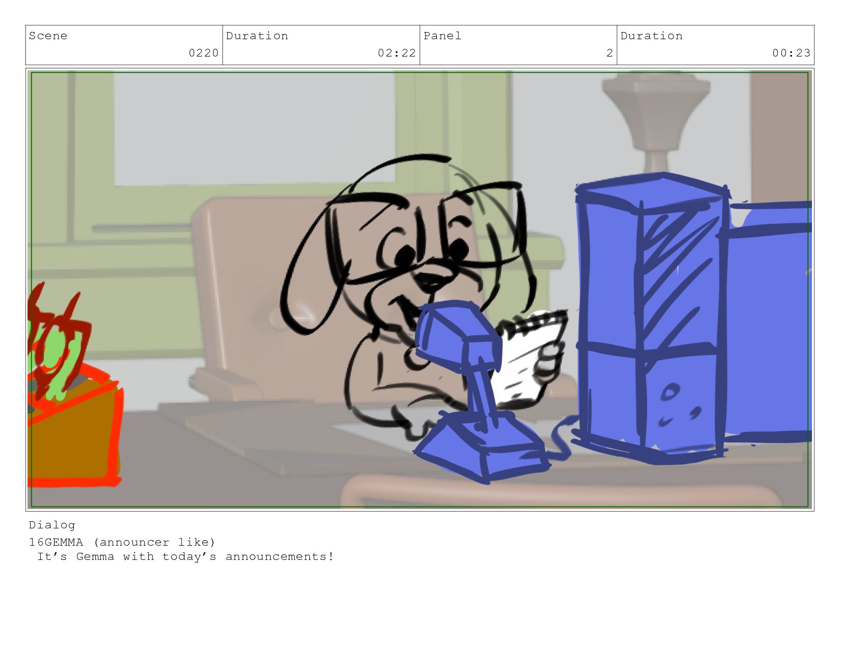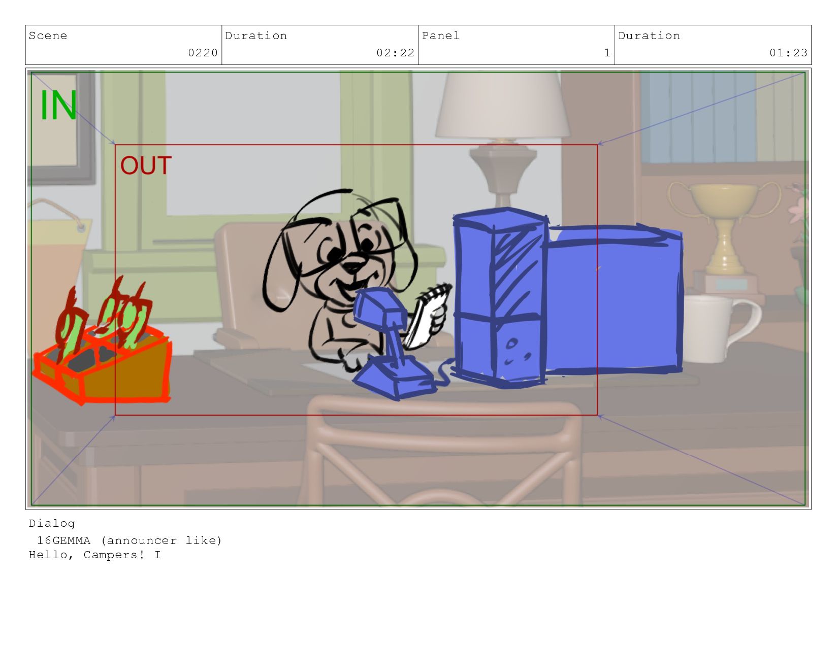 Scene 0220 Duration 02:22 Panel 1 Duration 01:23 Dialog 16GEMMA