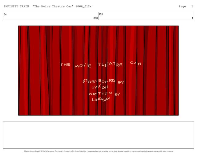 My final submission storyboard for the Infinity Train short, The Movie Theater Car. Written by Lindsay Katai. Storyboard by Jacob Winkler.