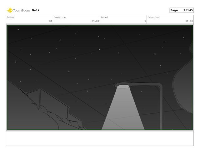 Scene 01 Duration 09:00 Panel 1 Duration 01:00 Walk Page