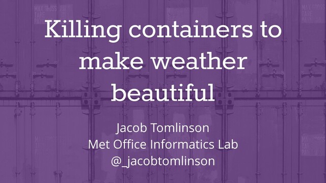 The Met Office Informatics Lab includes scientists, developers and designers. We build prototypes exploring new technologies to make environmental data useful. Here we describe a recent project to process multi-dimensional weather data to create a fully interactive 4D browser application. We used long-running containers to serve data and web pages and short-running processes to ingest and compress the data. Forecast data is issued every three hours so our data ingestion goes through regular and predictable bursts (i.e. perfect for autoscaling).