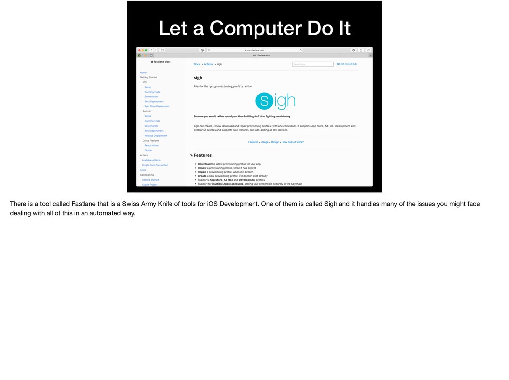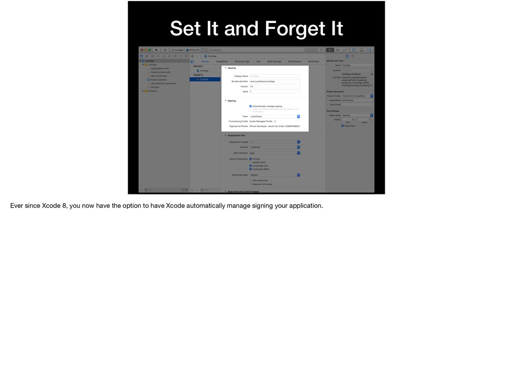 Apple it: “assures users that it is from a known source and the app hasn’t been modified since it was last signed. Before your app can integrate app services, be installed on a device, or be submitted to the App Store, it must be signed with a certificate issued by Apple.”