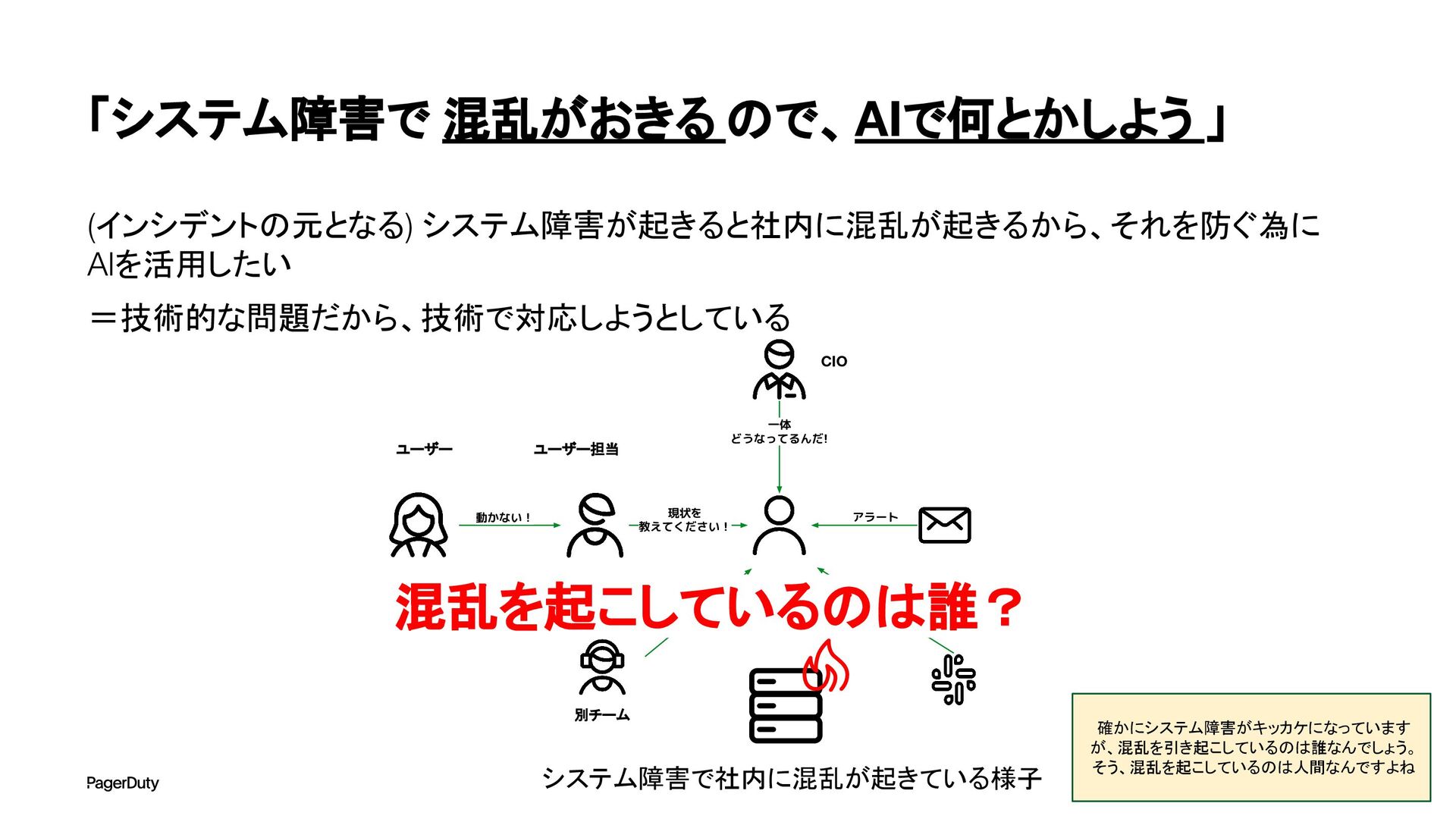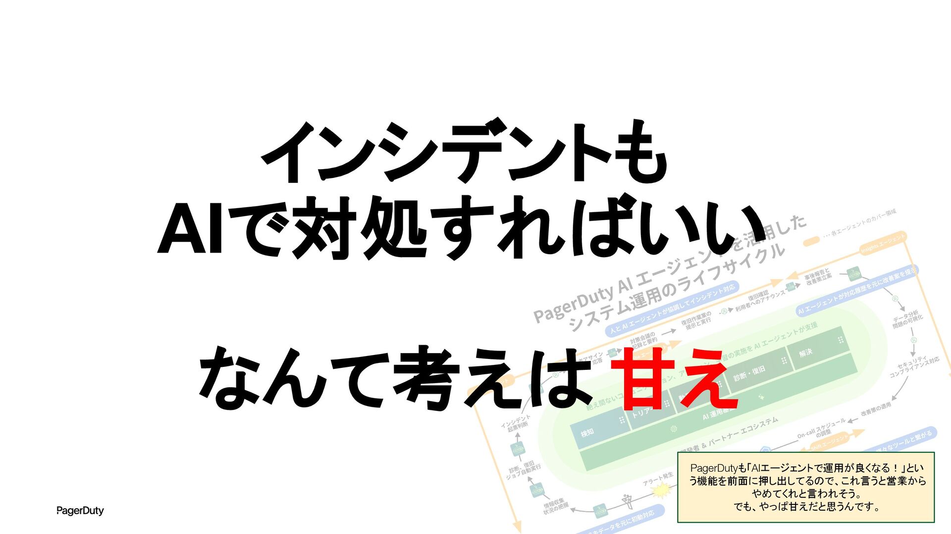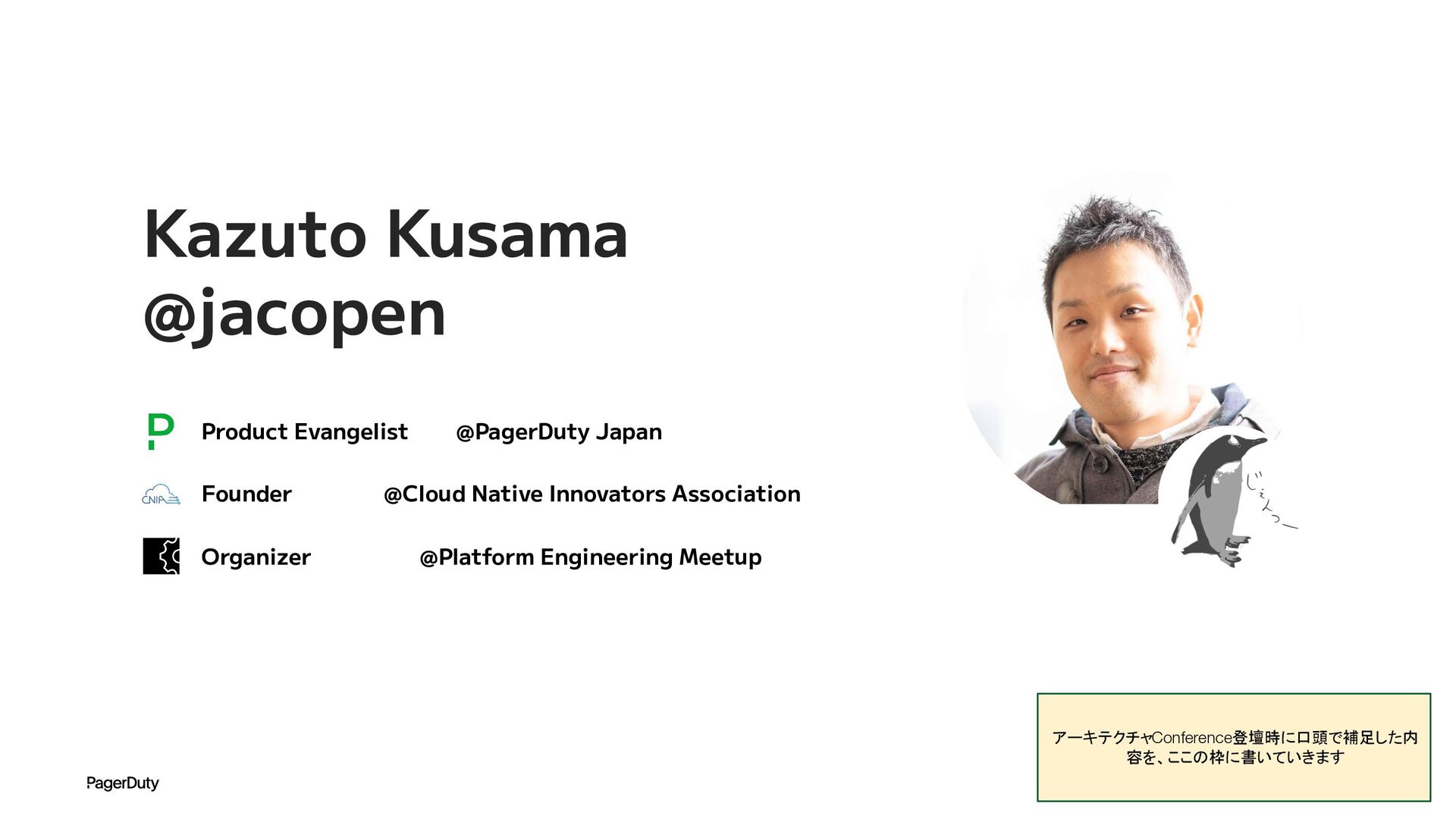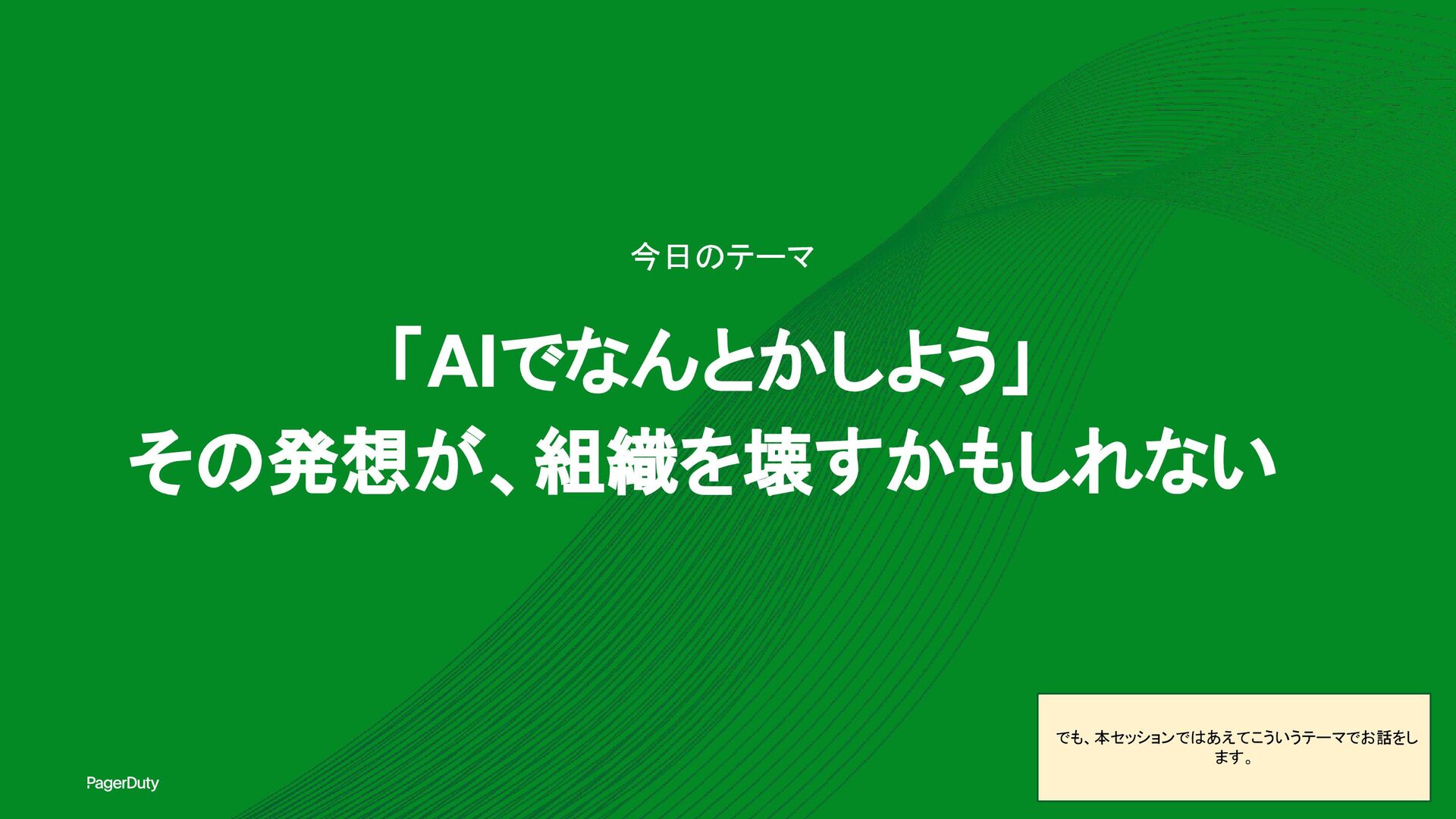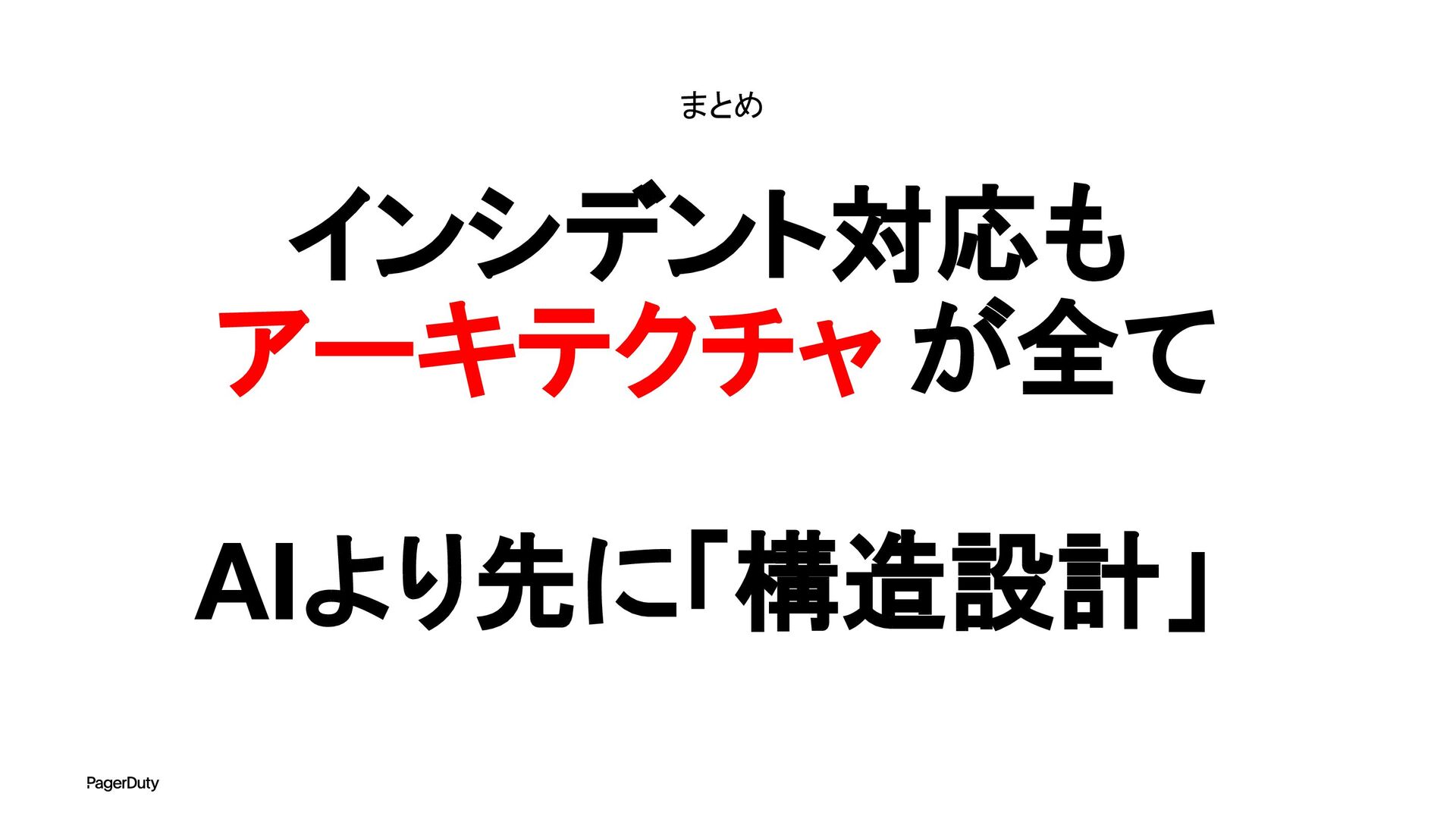 アーキテクチャConference 2025で登壇した資料です。AI時代、増え続けるインシデントに対して、AIを活用すれば良い感じになるのでは?って安直に考えたりしていませんか?でもそれは「甘え」です。それよりも先にやるべきこと。それは「組織アーキテクチャ」の見直しです。