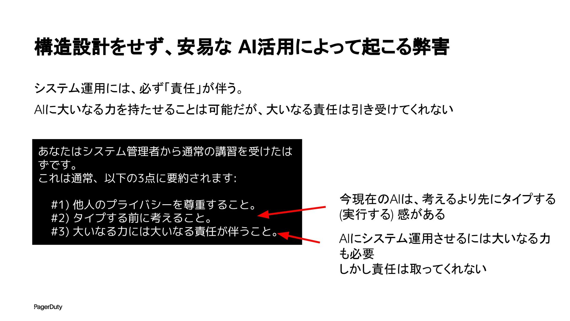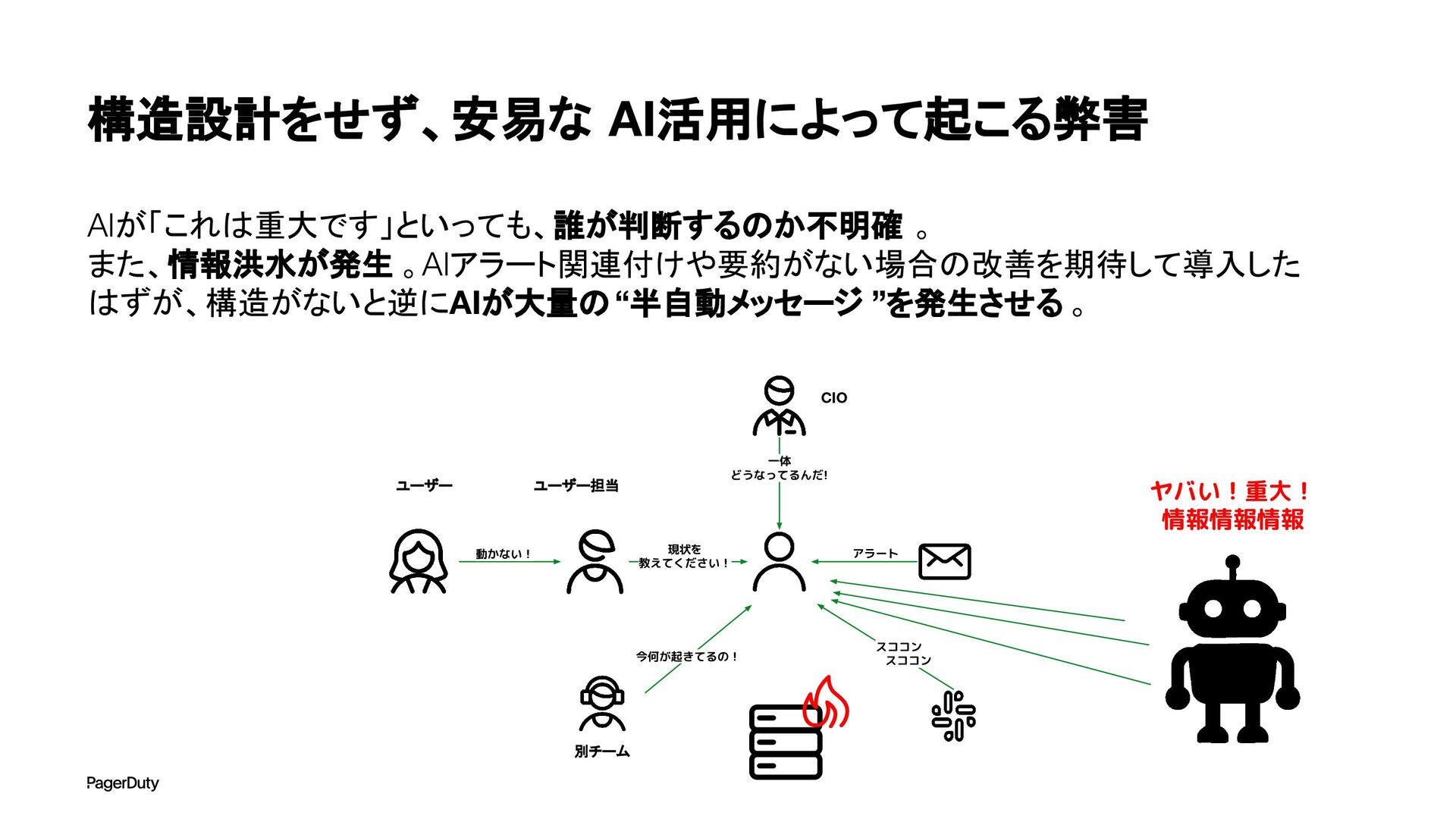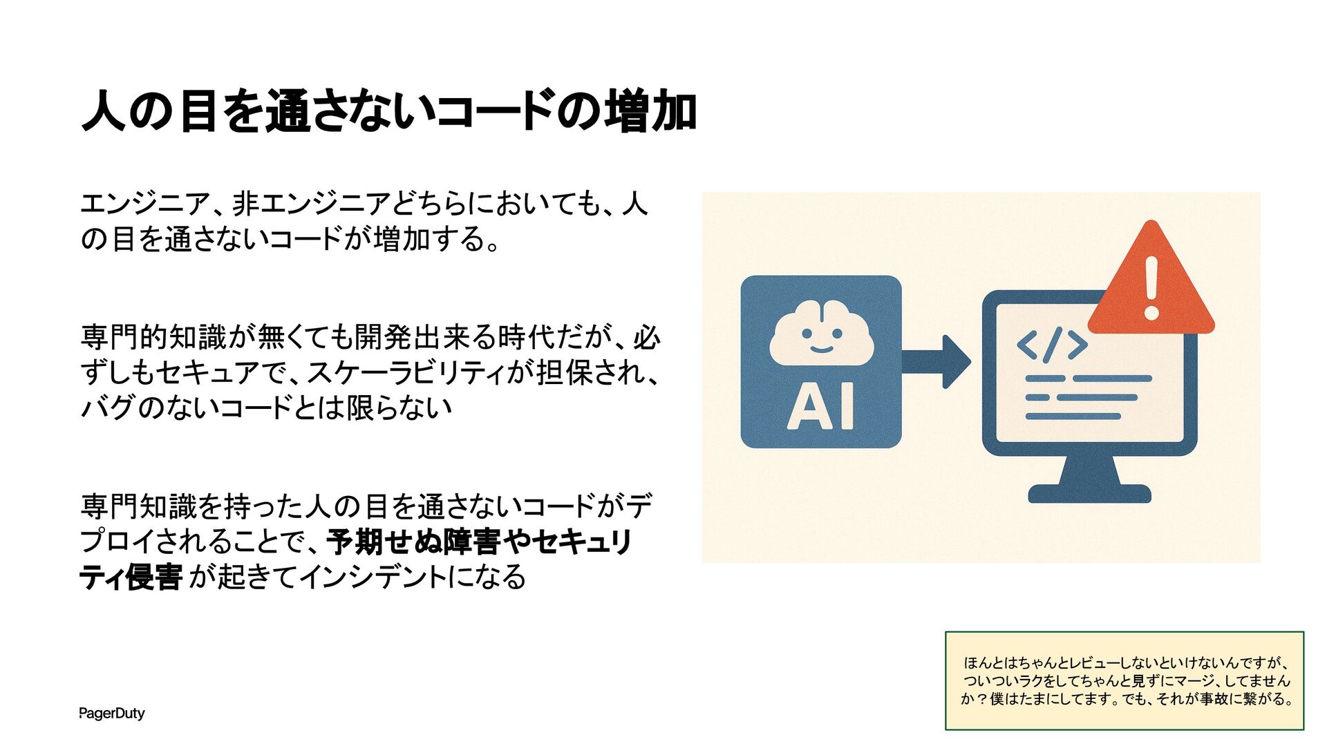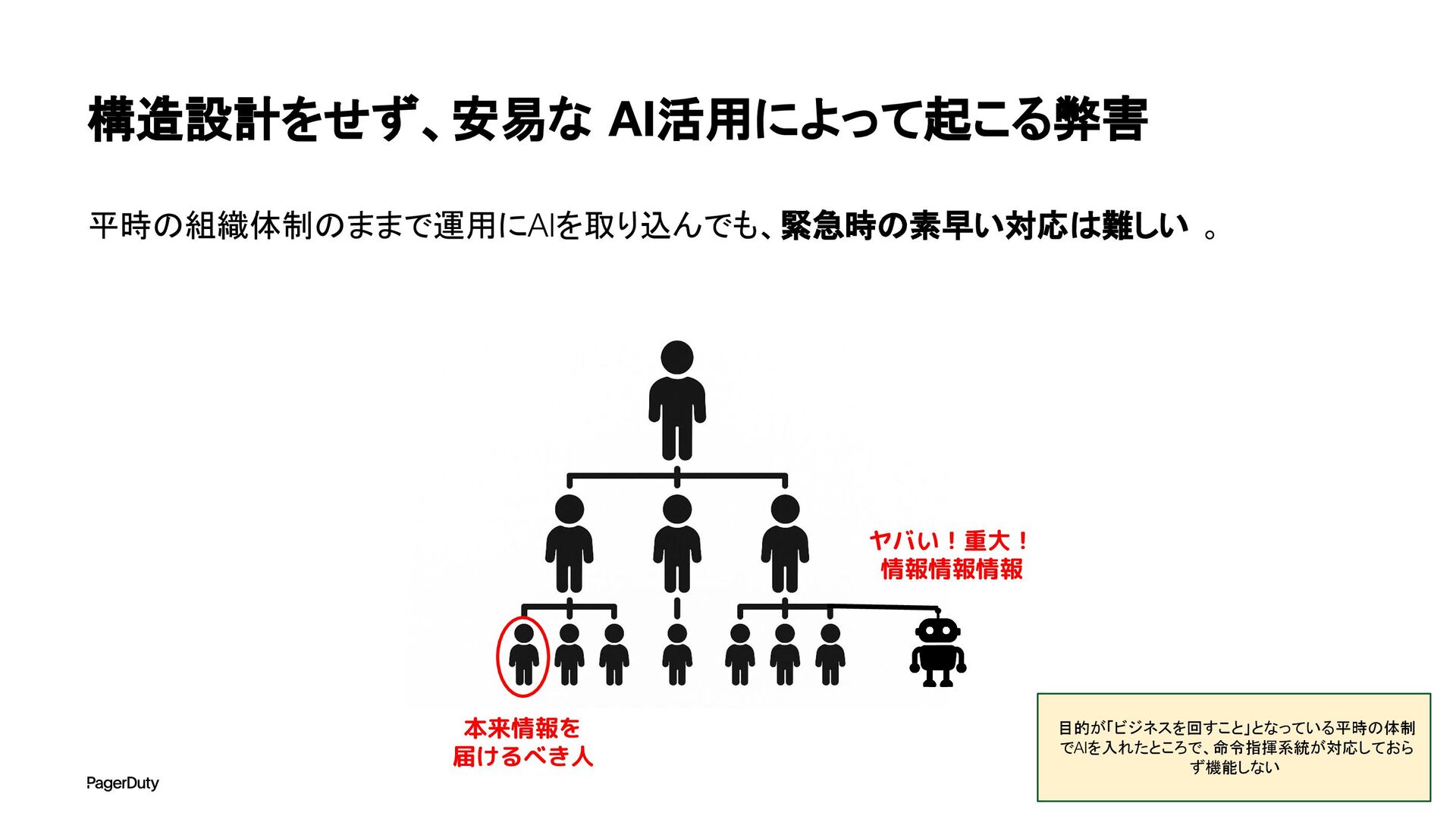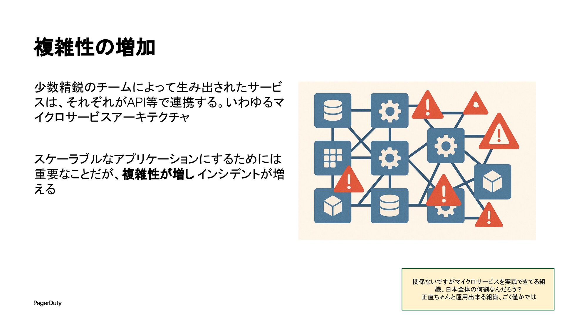 アーキテクチャConference 2025で登壇した資料です。AI時代、増え続けるインシデントに対して、AIを活用すれば良い感じになるのでは?って安直に考えたりしていませんか?でもそれは「甘え」です。それよりも先にやるべきこと。それは「組織アーキテクチャ」の見直しです。