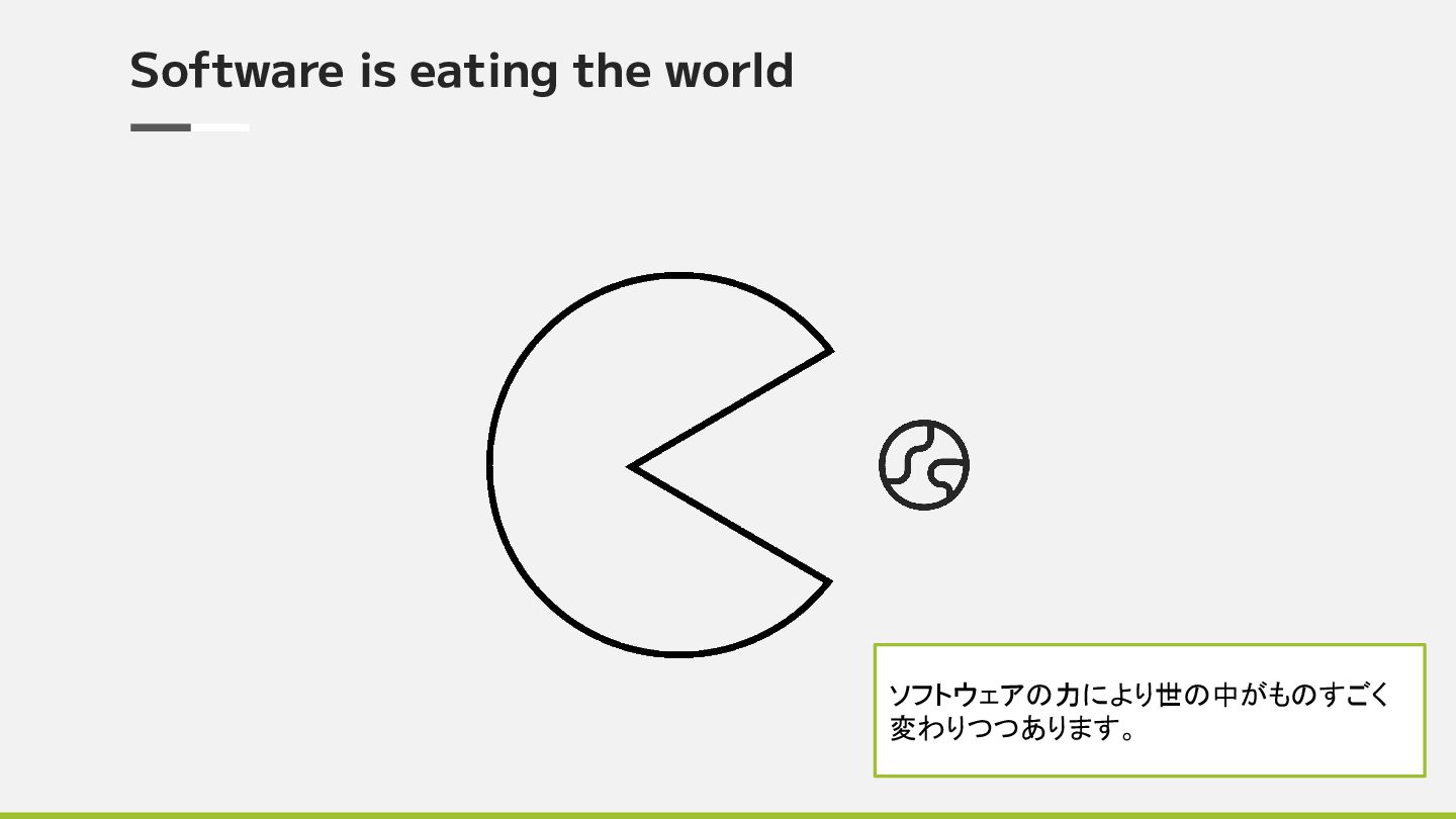 Software is eating the world ソフトウェアの力により世の中がものすごく 変わりつつあります。