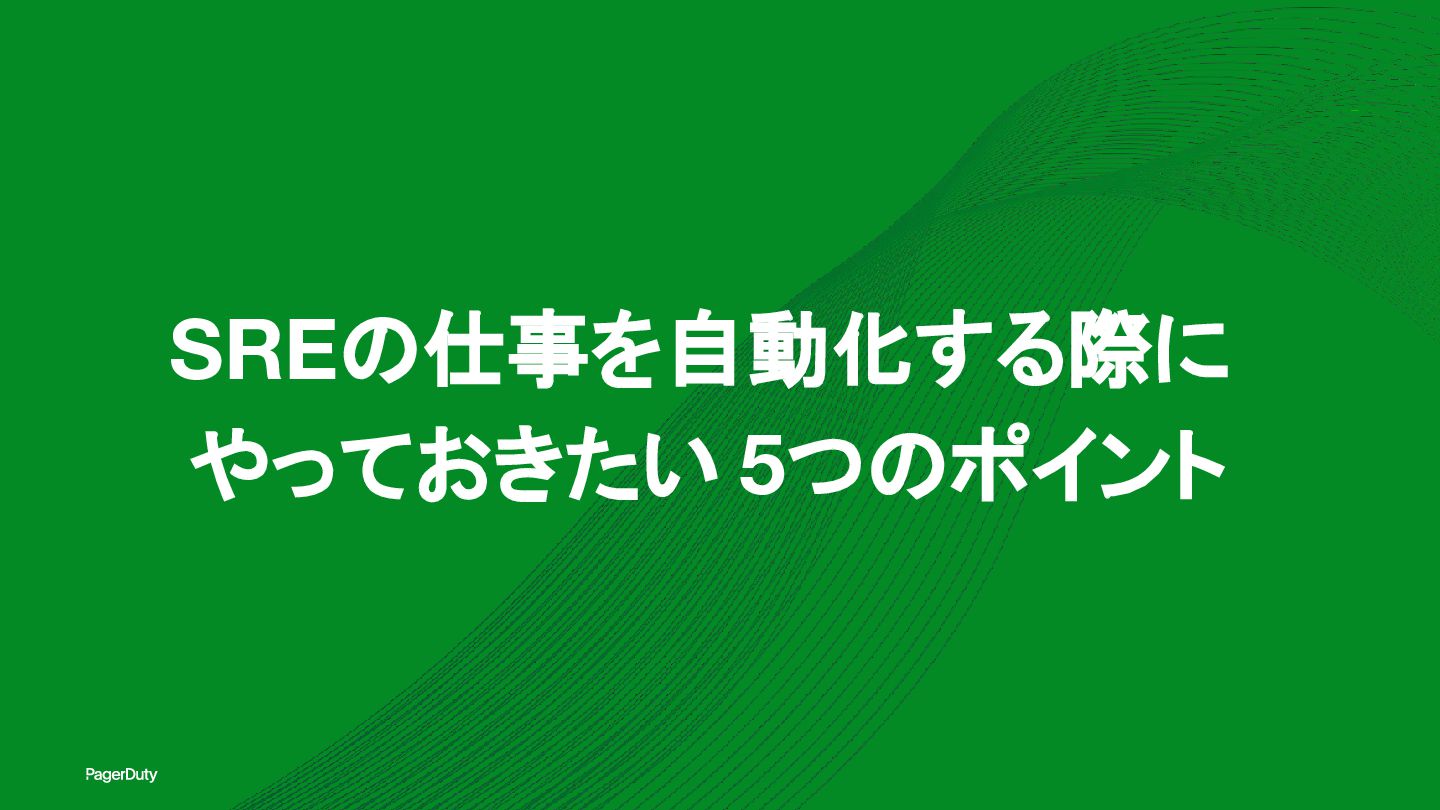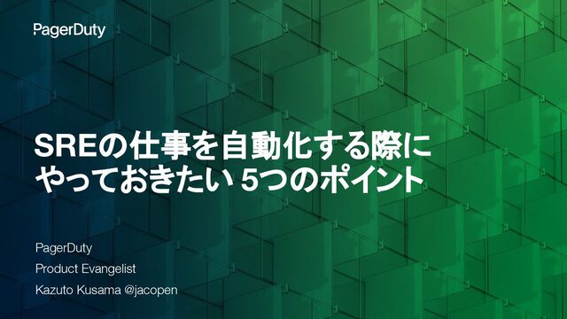 SREの仕事を自動化する際に やっておきたい 5つのポイント PagerDuty Product Evangelist Kazuto Kusama @jacopen