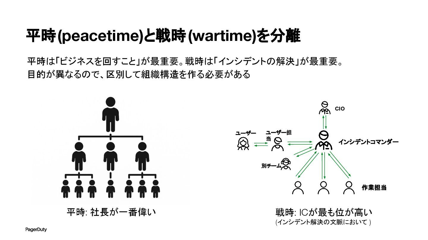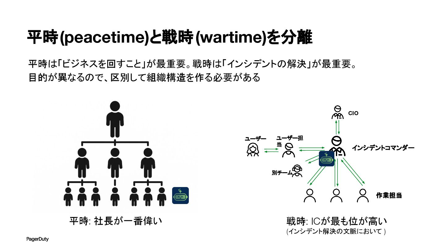 平時: 社長が一番偉い 戦時: ICが最も位が高い (インシデント解決の文脈において )