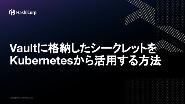 HashiCorpのWebinarで登壇した際の資料です。 Webinar動画はこちらから! https://www.hashicorp.com/events/webinars/how-to-get-vault-secrets-into-kubernetes-jp