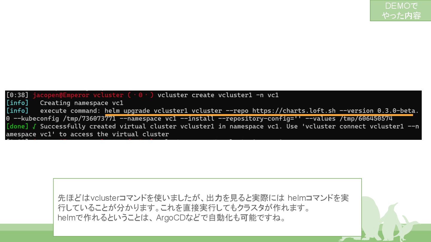 しかし最近、クラスタの中にさらに仮想的なクラスタを立ち上げる方法も生まれています。今回はそんな仮想kubernetesクラスタの選択肢のひとつであるvclusterを紹介します。