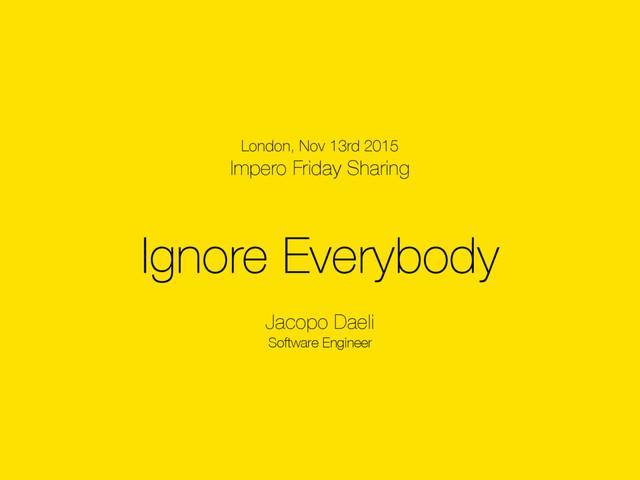 Ignore Everybody Jacopo Daeli Software Engineer London, Nov 13rd 2015