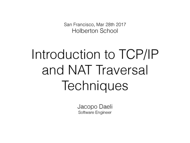 computer networking for establishing a direct connection between two peers in which one or both are behind NAT-enabled routers. UDP and TCP Hole Punching respectively use UDP and TCP Protocols. In this presentation we focus on UDP Hole Punching: it is easier to implement compared to TCP Hole Punching and, and it is also widely supported by the Nat-enabled routers commercialized today.
