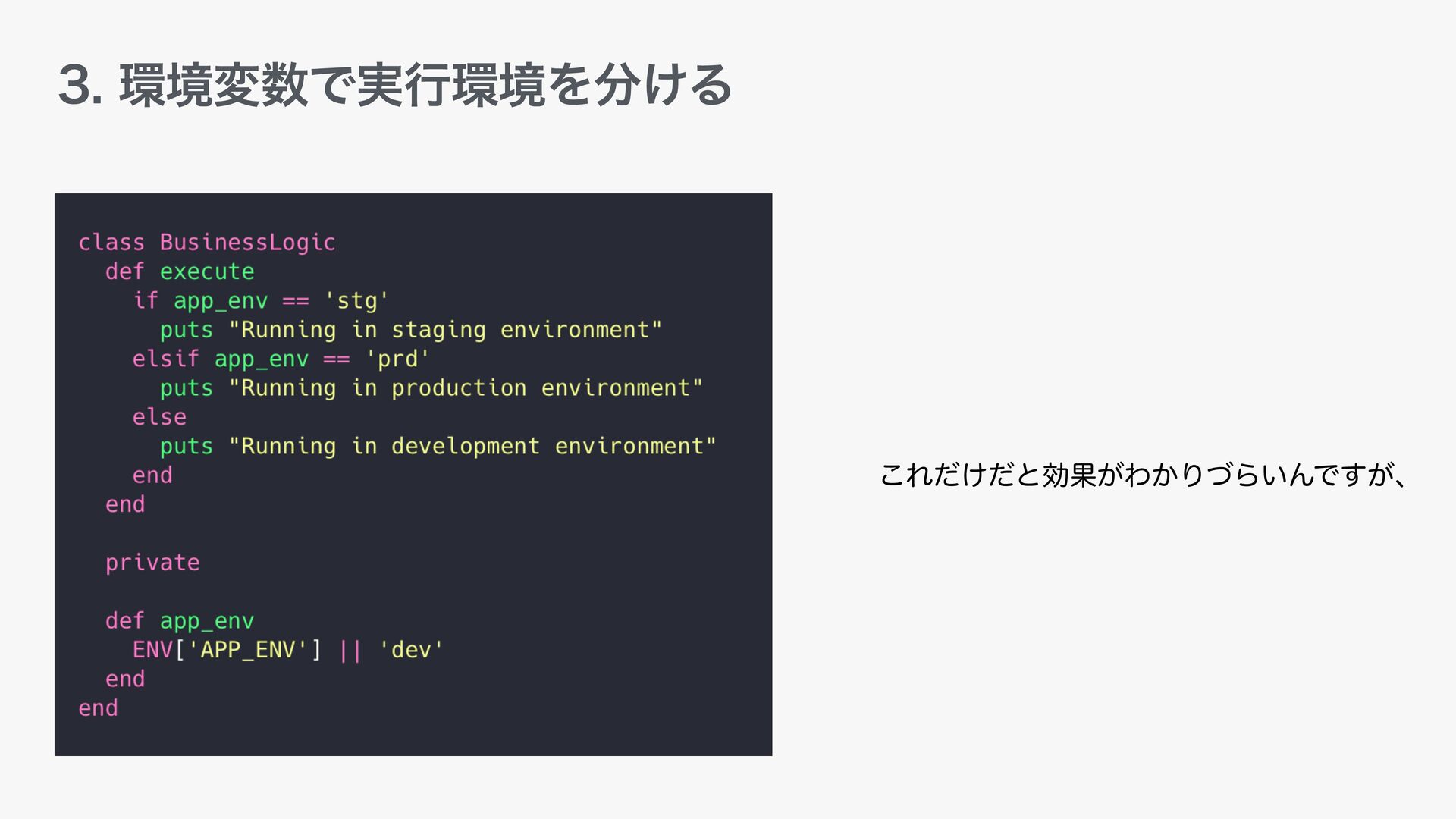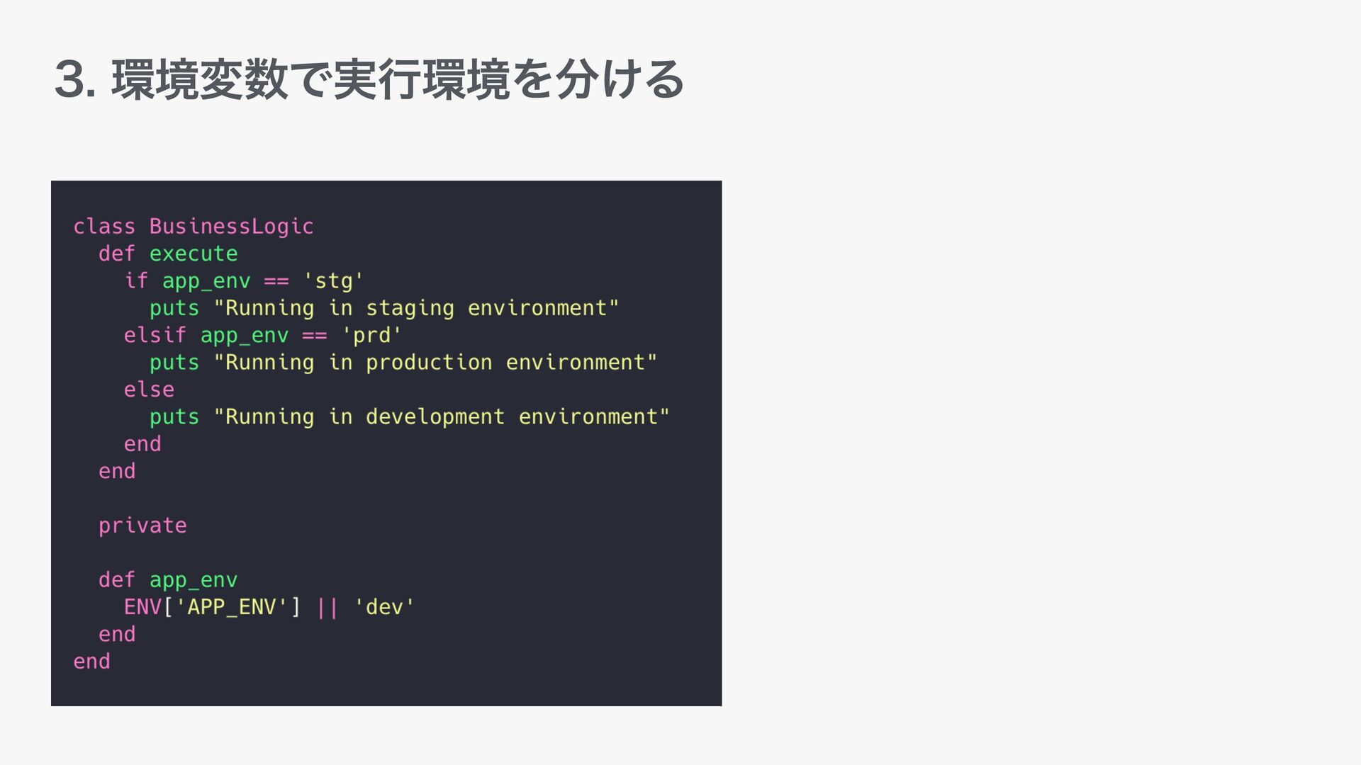 ϏδωεϩδοΫͰར༻͢ΔγʔΫϨοτ-BNCEBͷڥมͰͳ͘"84 4FDSFUT.BOBHFS͔Βऔಘ͢Δ 4FDSFU.BOBHFS lTUHNZ@TFDSFUz ࣮ߦڥΛࣔ͢ڥมz"11@&/7zͰɺ ͦͷڥ͝ͱͷ4FDSFUTΛऔಘ͍ͯ͠Δ