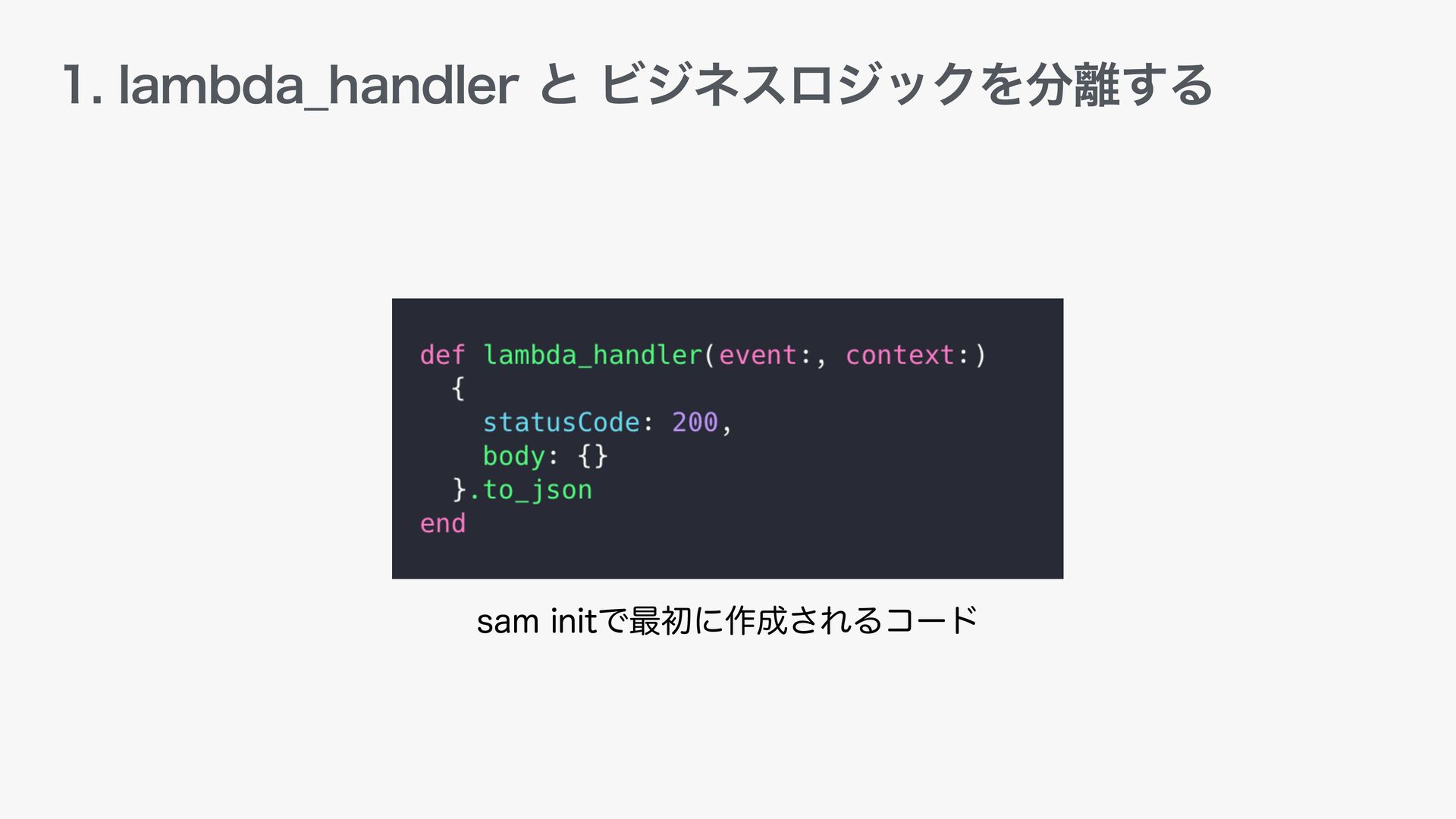 AWS SAM × Ruby で快適に Lambdaファンクションを開発するためのいくつかの...