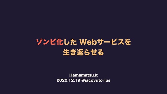 κϯϏԽͨ͠8FCαʔϏεΛ ੜ͖ฦΒͤΔ )BNBNBUTVJU !KBDPZVUPSJVT