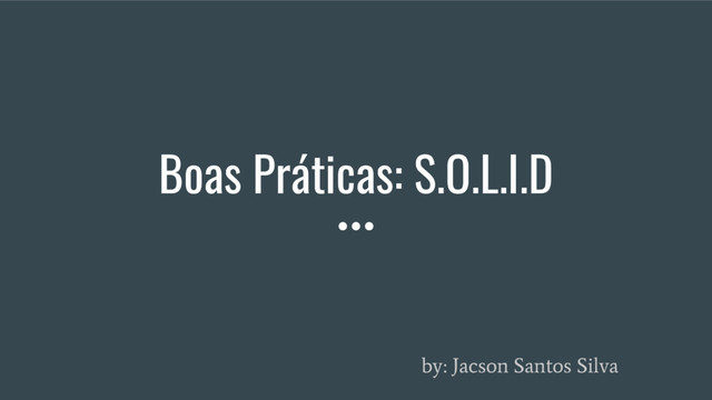 Palestra Ministrada no 40º PHPub em São Luís - MA com apoio da comunidade "PHP Maranhão", onde falei um pouco sobre os princípios SOLID