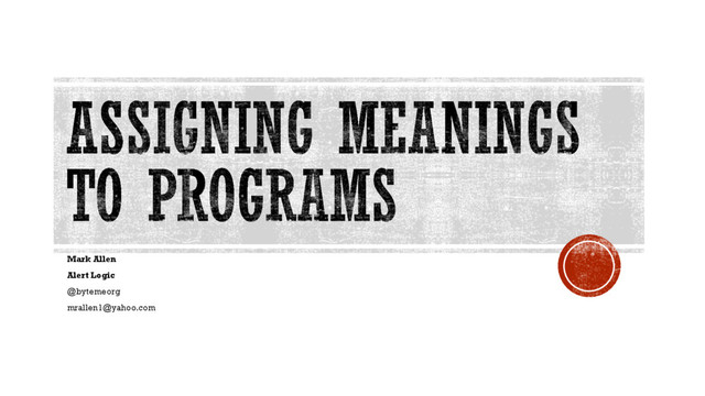 language and computer implementations. §Using logical statements lets us assert various useful properties of a program. §Visualization and code (AST) analysis are powerful techniques to understand how code behaves. §Historical papers are dope! Assigning Meanings to Programs | @bytemeorg