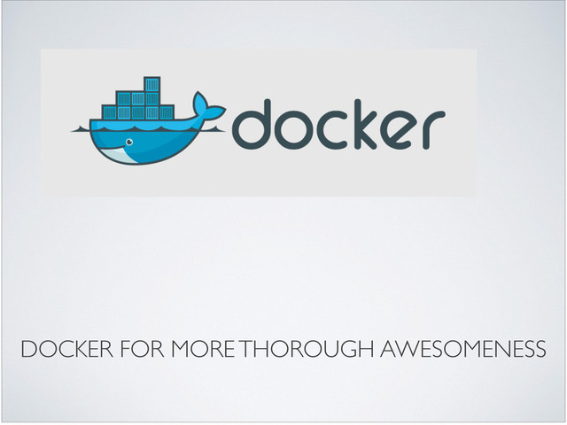 and pull primitives) • Makes deploying services to {your own | cloud | PaaS } servers easy and repeatable • Completely isolates your application environment • Faithfully replicates your environment for dev and testing • It's fun!