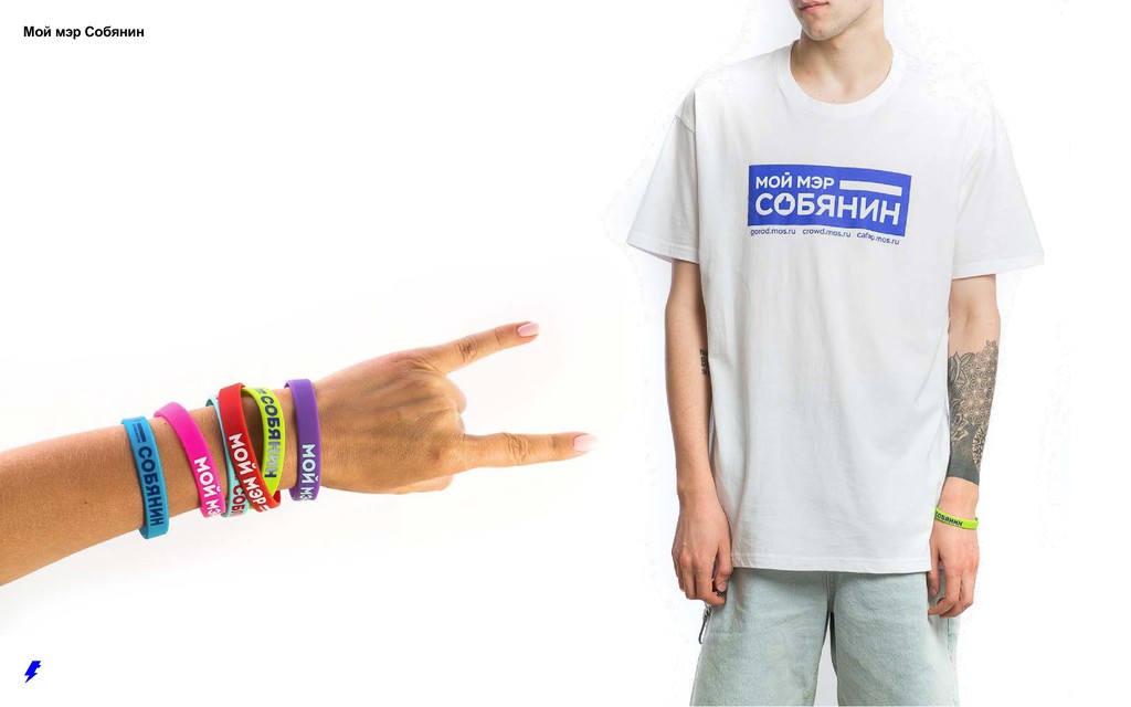 кампании мэра Москвы. Решение Был разработан набор сувениров, которые всегда будут интересны и практичны в использовании для жителей города: это брендированные футболки, толстовки, дорожные пледы, яркие флешки и браслеты. Функциональность выбранных сувениров отражает подход мэра к управлению городом и практичность решений предвыборной программы С. С. Собянина. Яркие и функциональные подарки оставляют приятные впечатления и демонстрируют курс на прогрессивные решения в управлении городом.