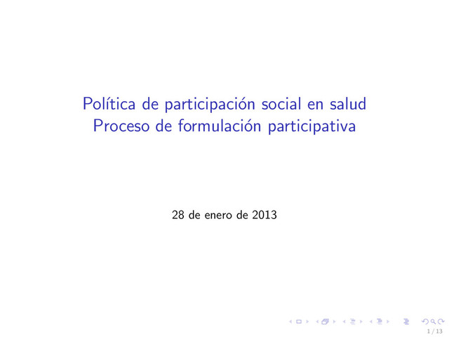 la organizaci´ on comunitaria y social en los espacios de toma de decisiones con los Comit´ es de Salud, Consejos Locales de Salud y Foro Nacional de Salud, a nivel comunitario, municipal, departamental y nacional. Fortalecimiento y desarrollo de capacidades organizativas y de gesti´ on comunitaria, a las organizaciones existentes o a las que surjan del proceso de organizaci´ on. Posicionamiento de las organizaciones comunitarias y sociales para que tomen control de sus determinantes sociales de la salud en diferentes espacios, incidiendo para que el Estado promulgue Pol´ ıticas p´ ublicas saludables integrales a nivel comunitaria, municipal, departamental y nacional. 8 / 13