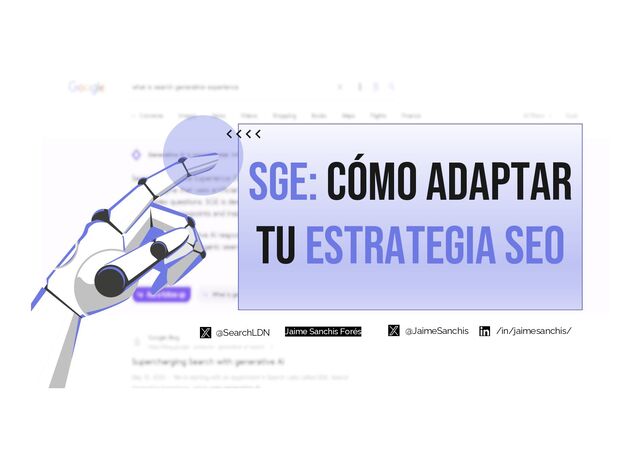 Engine (SGE) se activa al hacer preguntas sobre un tema específico o al seleccionar preguntas sugeridas, lo que permite una interacción más dinámica. • SGE recuerda el contexto de consultas anteriores para ayudar a los usuarios a refinar sus búsquedas, ofreciendo así una experiencia más fluida y personalizada. Esto facilita a los usuarios formular preguntas de forma más natural, similar a hablar con otra persona, la búsqueda es más intuitiva y eficiente, especialmente en dispositivos móviles y asistentes de voz. @JaimeSanchis /in/jaimesanchis/ @SearchLDN