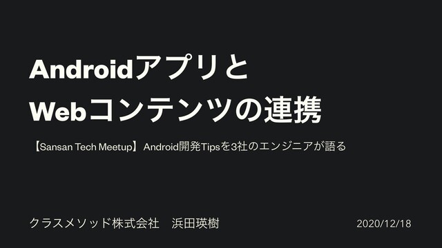 AndroidΞϓϦͱ Webίϯςϯπͷ࿈ܞ Ϋϥεϝιουגࣜձࣾɹాӯथ ʲSansan Tech MeetupʳAndroid։ൃTipsΛ3ࣾͷΤϯδχΞ͕ޠΔ 2020/12/18