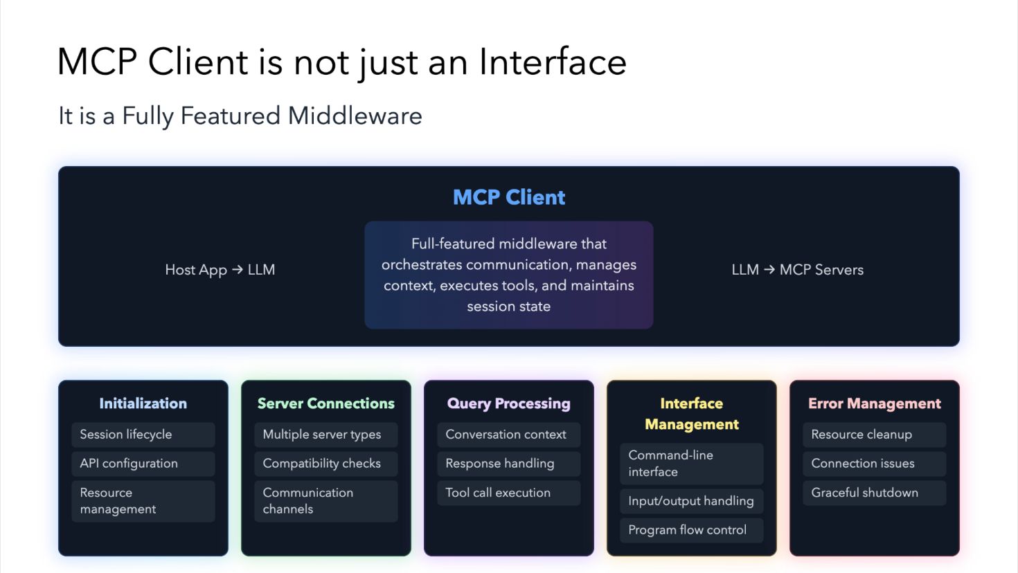 Context Management: Efficient handling of context between the LLM and external systems