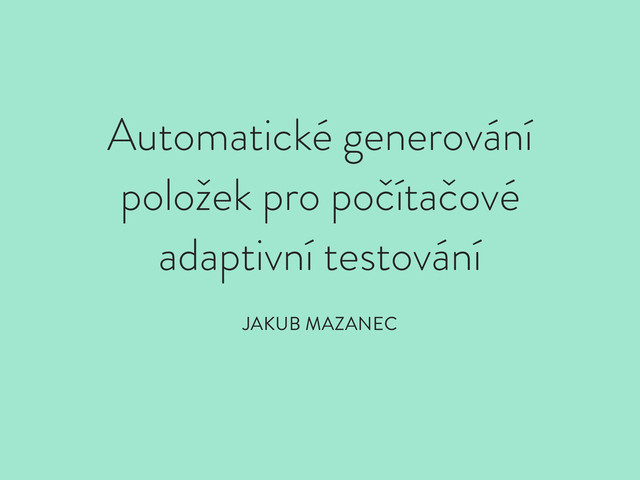 elementů ◊ ◊ Elementy jsou algoritmicky variovány a vygenerují se nové položky ◊ ◊ Parametry položek jsou založeny na kombinaci použitých elementů (díky využití statistických modelů)