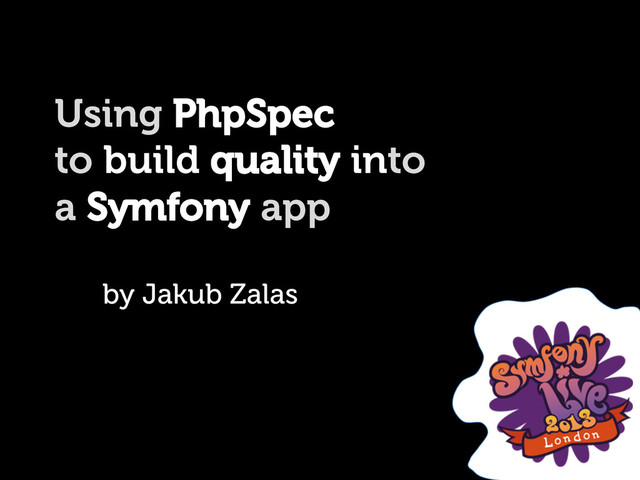 During the talk I introduced the attendees to PhpSpec and shown how to use it to drive the design and improve the quality of a Symfony application.