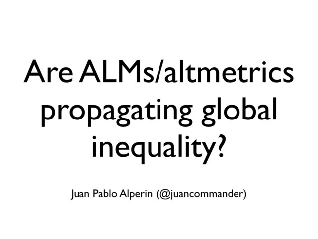 Altmetrics/Article Level Metrics (ALMs) may prove to be a disruptive force in today's scholarly communication landscpae, but scholars in the developing world have little hope of benefiting from their increased prevalence. Like with commerically-controlled citation indexes before them, ALM/altmetrics are highly biased towards those in the global North (both in uptake and in the resulting metrics). Yet, these biases are hardly ever acknowledged and even less frequently taken into consideration. As the ALM/altmerics movements consolidate around a group of stakeholders located exclusively in the global North, the rest of the world will once again be left behind and the rest of the world will be forced play catch-up in a race it has no hope of winning.