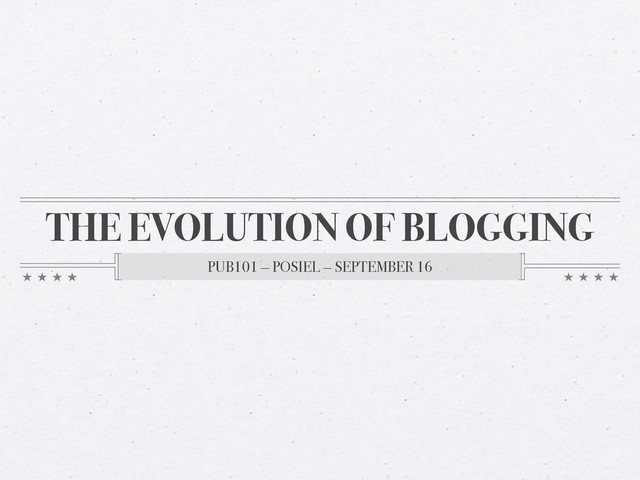 USENET posts to the Web 1997 – term Weblog was coined by Jorn Barger 1997 – SlashDot launches 1998 – Open Diary launched – Would later be followed by LiveJournal (1999), DiaryLand (1999), Pitas (1999), Blogger (1999), Xanga (2000), Movable Type (2001) and Wordpress (2003). http://www.npr.org/templates/story/story.php?storyId=17421022