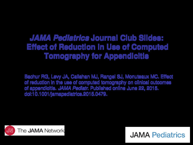 appendicitis. • US use increased 46%. – From 24.0% in 2010 to 35.3% in 2013; absolute difference, 11.3%. – Adjusted test for linear trend, P = .02. • CT use decreased 48%. – From 21.4% in 2010 to 11.6% in 2013; absolute difference, −9.8%. – Adjusted test for linear trend, P < .001. • Outcomes – Proportion of negative appendectomies declined during the 4-year study period (from 4.7% in 2010 to 3.6% in 2013; adjusted test for linear trend, P = .002). – Proportion of appendiceal perforations and ED revisits did not change (adjusted tests for linear trend, P = .64 and P = .84, respectively).