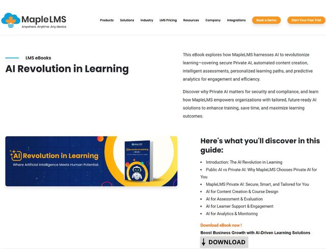 Learn how MapleLMS transforms learning through intelligent analytics, customizable routes, and safe automation using Private AI. Get your eBook for free: https://www.maplelms.com/ebooks/ai-revolution-in-learning-guide/