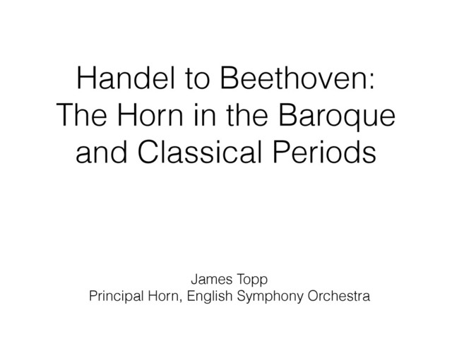 small number of virtuoso players (soloists) • As technique develops and is handed down, becomes more prevalent in orchestral playing • Mozart in the Prague Symphony and Don Giovanni (1787) - Bohemian orchestra • Beethoven in the Symphonies esp. 3rd, 6th, 9th (famous 4th horn solo) - also Fidelio • Valves in development by the time of Beethoven’s death (1827)