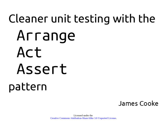 My name is James and I've been using the Arrange Act Assert pattern as part of my daily Test Driven Development practice for a number of years over multiple projects with different development teams. During this time I've worked to make my tests as readable, simple and generally Pythonic as possible - and I firmly believe that the AAA pattern can help us all with this quest.