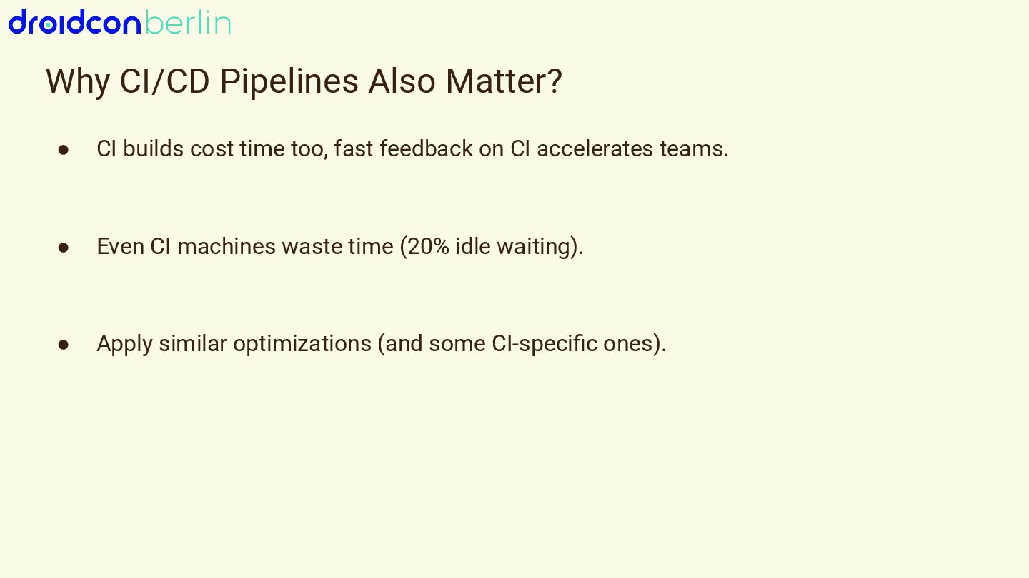 Waiting on builds and pipelines wastes time and kills flow. In this talk, I’ll show how I cut both Gradle build times and CI pipeline durations by 50% on a production Android app, all without introducing new tools or rewriting existing code.