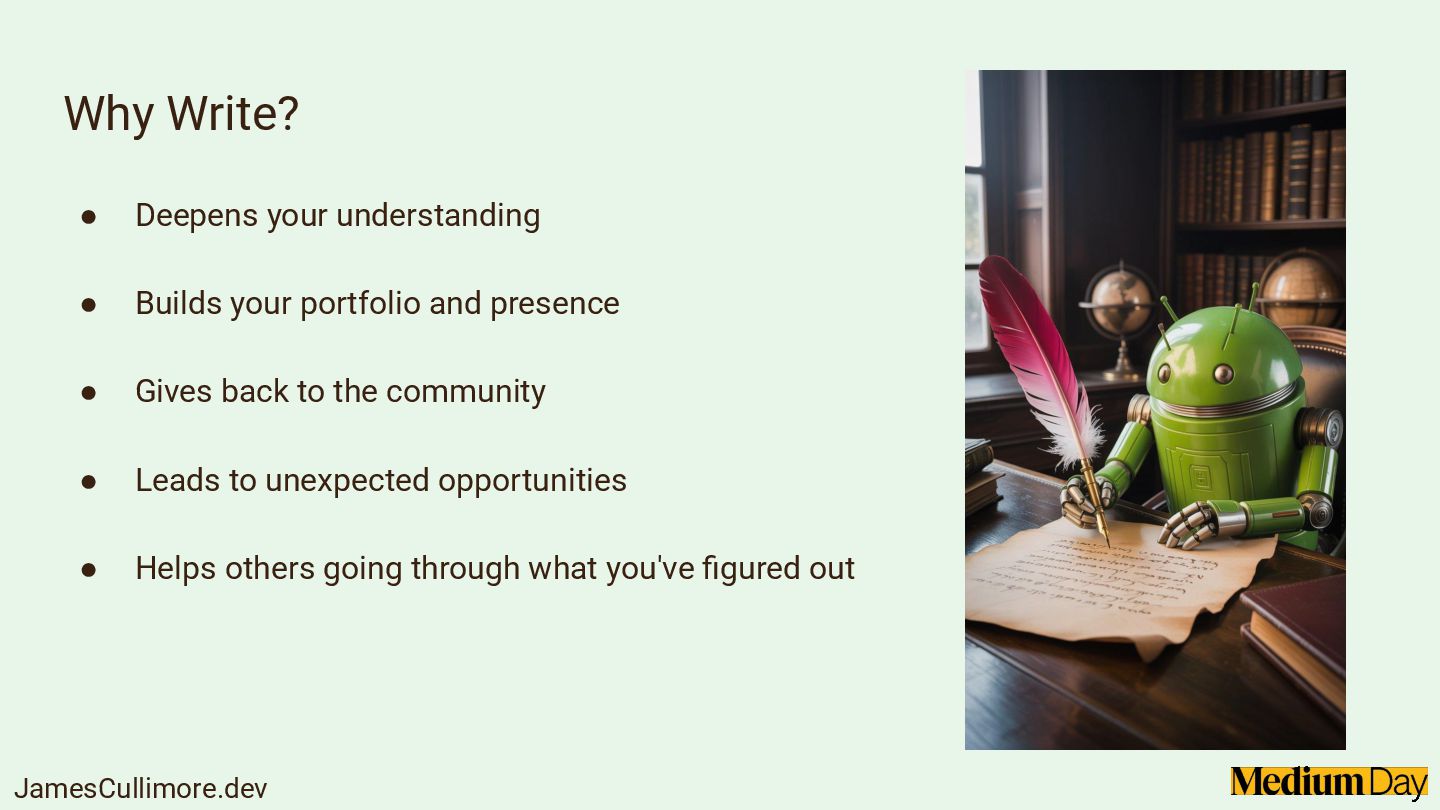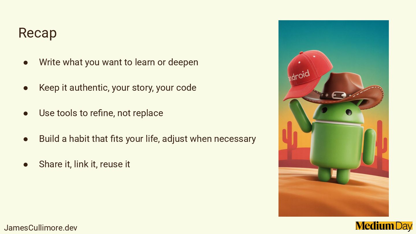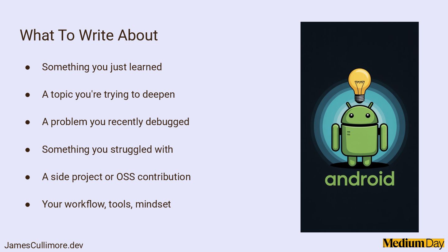Sharing what you learn makes you a better developer, and writing on Medium is one of the easiest ways to start. In this session, we'll explore why writing matters for your growth, your career, and your community. We'll cover how to find your writing voice, choose topics without overthinking, and keep your articles clear and useful. Expect practical tips on structuring your articles, writing consistently, and avoiding common pitfalls that hold developers back from publishing.