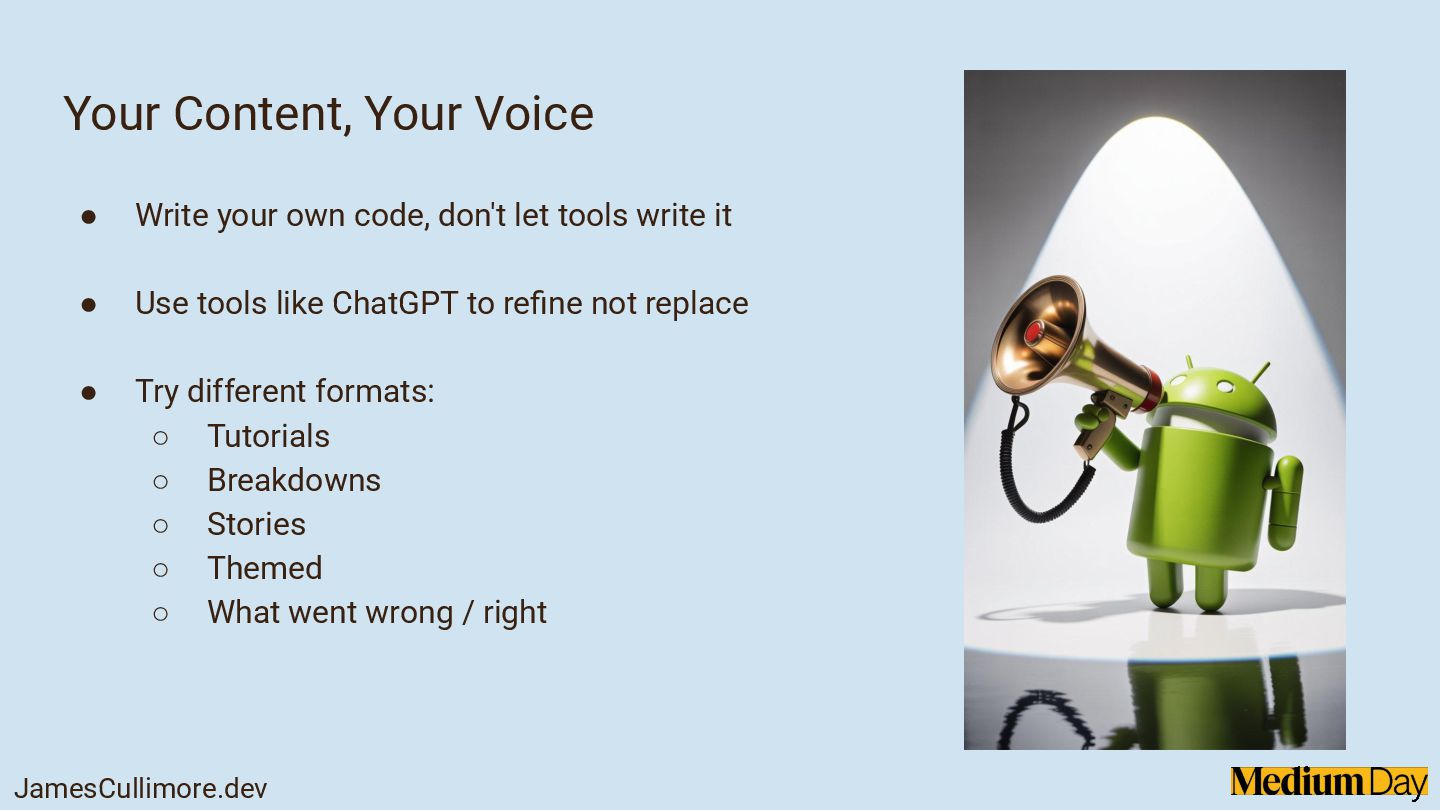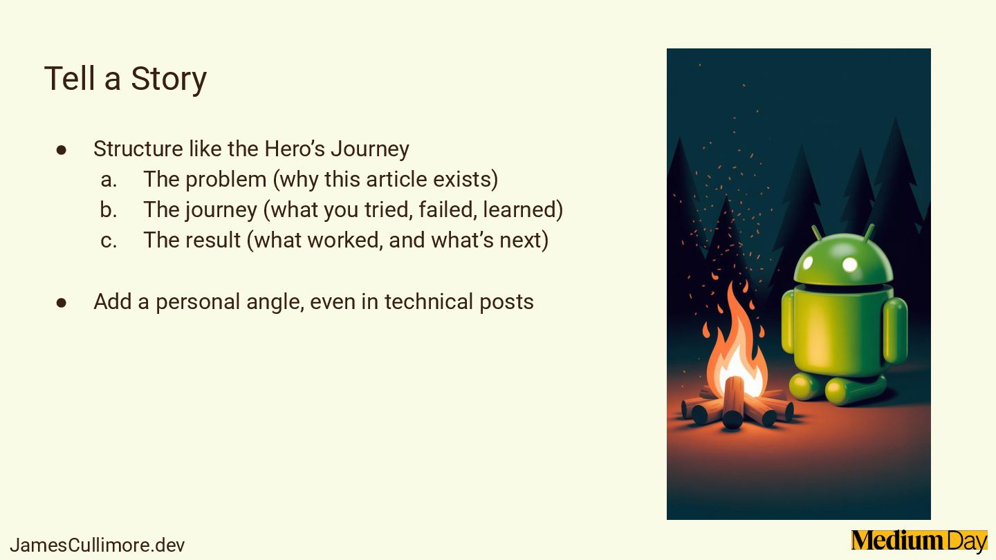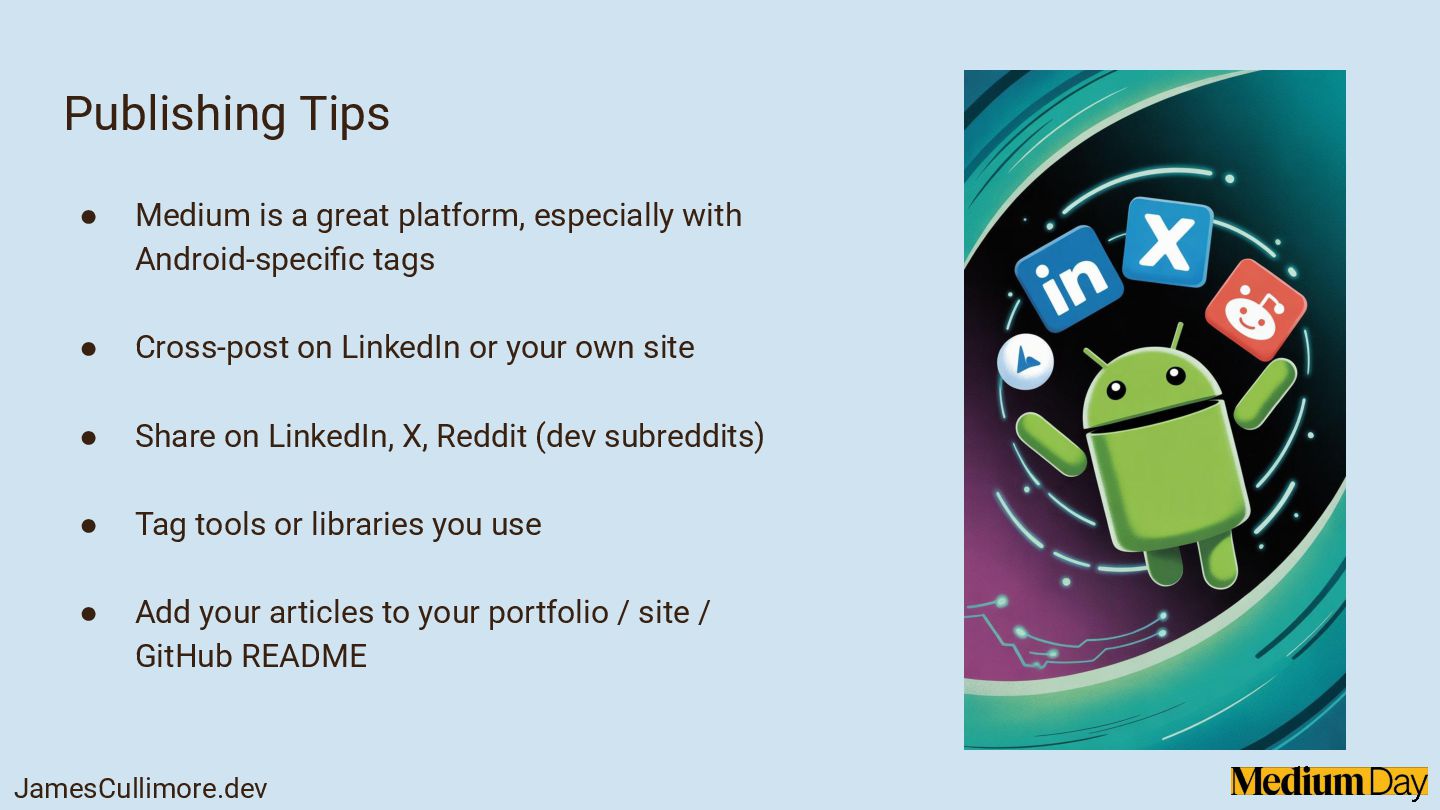 Sharing what you learn makes you a better developer, and writing on Medium is one of the easiest ways to start. In this session, we'll explore why writing matters for your growth, your career, and your community. We'll cover how to find your writing voice, choose topics without overthinking, and keep your articles clear and useful. Expect practical tips on structuring your articles, writing consistently, and avoiding common pitfalls that hold developers back from publishing.