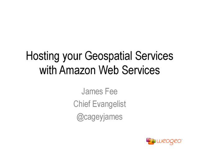Hosting your Geospatial Services with Amazon Web Services James Fee