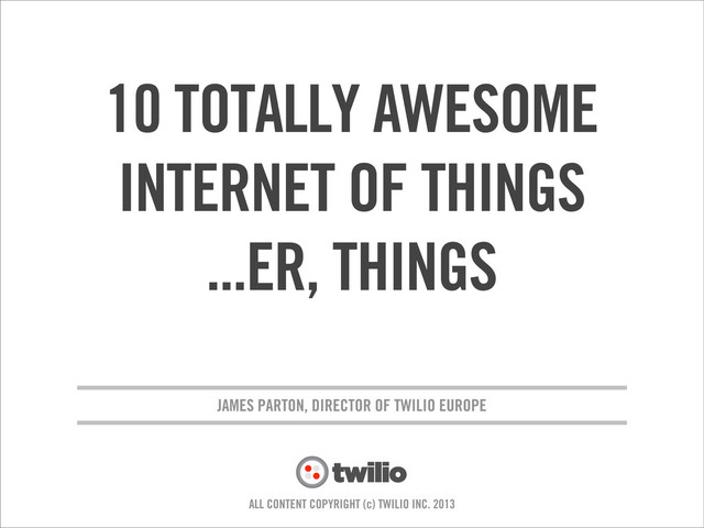 An ice breaker presentation to open up the June 2013 Minbar meet up covering the Internet of Things. For more info on Minibar visit http://www.meetup.com/minibar/