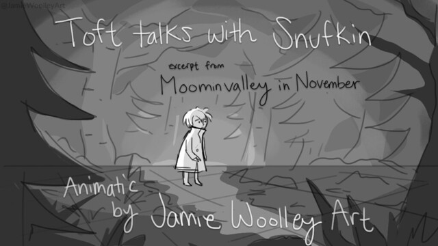 Animatic by Jamie Woolley based on dialogue from Tove Jansson’s book Moominvalley in November. A frightened and grief stricken Toft seeks solace with a wise and similarly grieving friend.