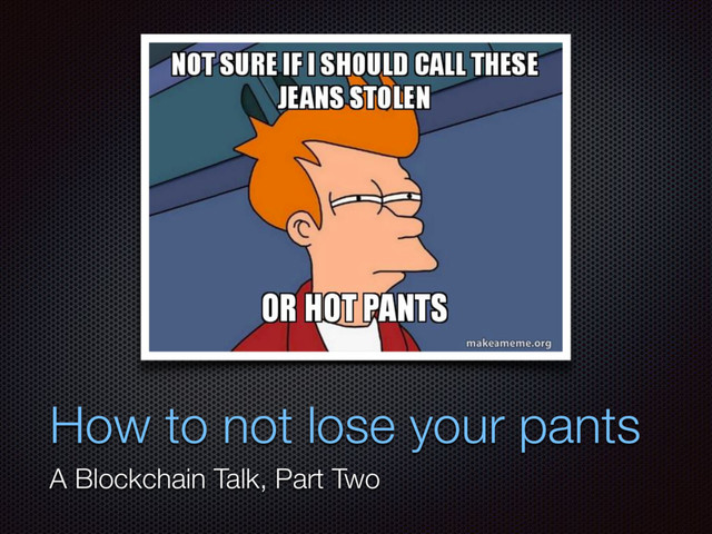 Blockchain Talk Part 2: How to Not Lose Your Pants