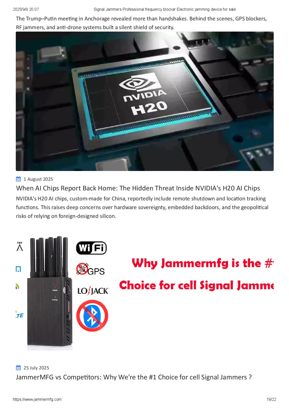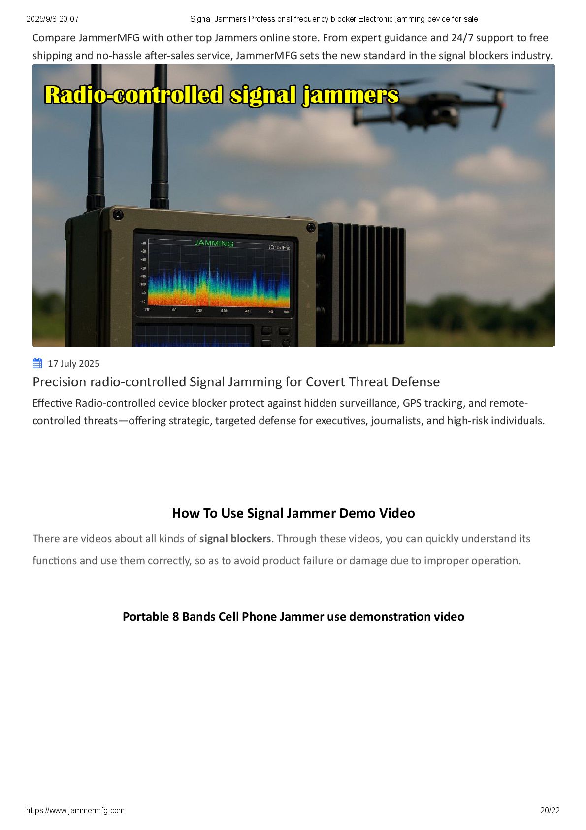At JammerMFG, we pioneer advanced protection through practical signal jamming solutions. Our specially designed drone jammer systems, GPS blockers, and portable anti-drone devices empower users—from security professionals to private individuals—to safely navigate a world where unauthorized surveillance and tracking are real threats.