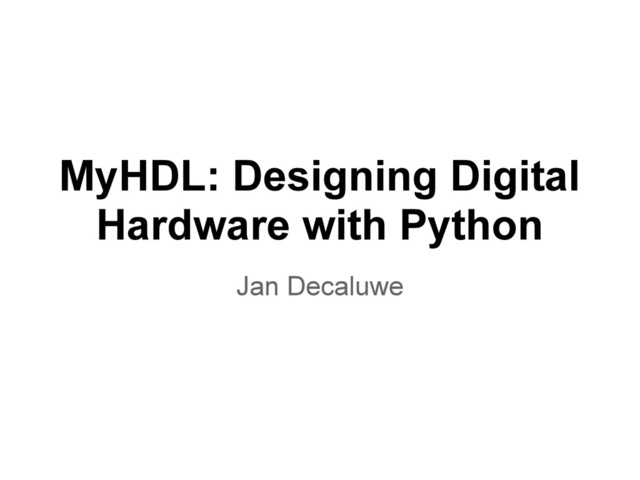 b = Signal(intbv(0, min=-8, max=8)) c = Signal(intbv(0, min=-8, max=15)) c.next = a + b • Conversion to Verilog: c <= $signed({1'b0, a}) + b; • Conversion to VHDL: c <= signed(resize(a, 5)) + b; • The convertor does the casts and resizings, so you don't have to!