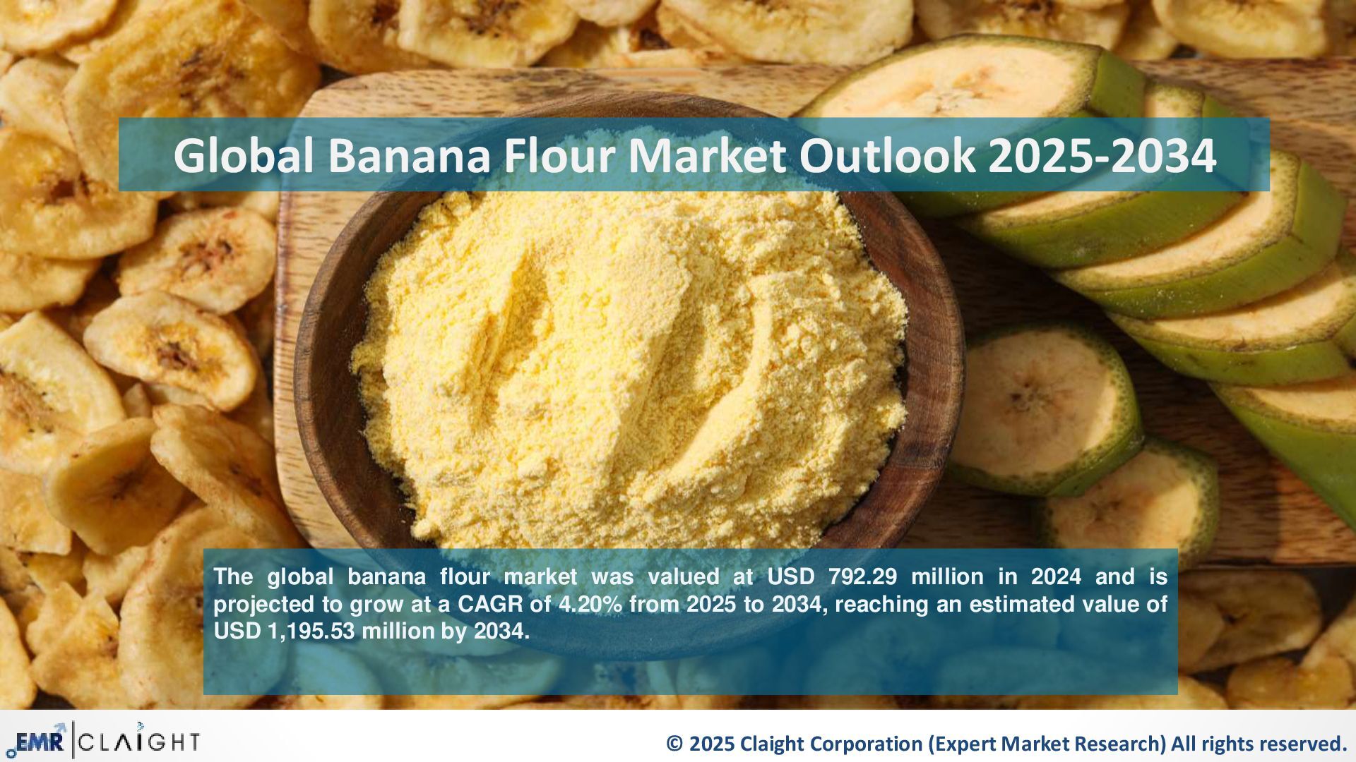 The global banana flour market was valued at USD 792.29 million in 2024 and is projected to grow at a CAGR of 4.20% from 2025 to 2034, reaching an estimated value of USD 1,195.53 million by 2034. Global Banana Flour Market Outlook 2025-2034