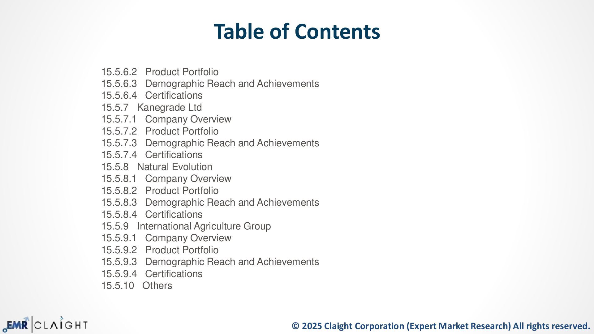 Disclaimer 05 01 This is a sample text. Trade Data Analysis Claight Corp. publishes market research reports on various industry verticals. All reports purchased via the website, email or over the phone are subject to the following disclaimer. A purchase automatically indicates acceptance of the disclaimer. We, at EMR, gather information from various sources such as face-to- face interviews, paid databases, annual reports, surveys and media releases. This information is collated in good faith and used on an as is and as available basis by us. Our reports should only be construed as guidance. We assert that any business or investment decisions should not be based purely on the information presented in our reports. We will not be responsible for any losses incurred by a client as a result of decisions made based on any information included in the reports. We do not guarantee or take responsibility for the accuracy, completeness, reliability and usefulness of any information. In many cases, the opinion expressed in the reports is our current opinion based on the prevailing market trends and is subject to change. The information provided by us is for the sole use of the authorised recipient(s). No part of the information or service may be duplicated or transmitted in any manner or by any medium without prior permission from EMR. Any such act will be considered as the breach of the ‘Terms & Conditions’ under which the report has been purchased.