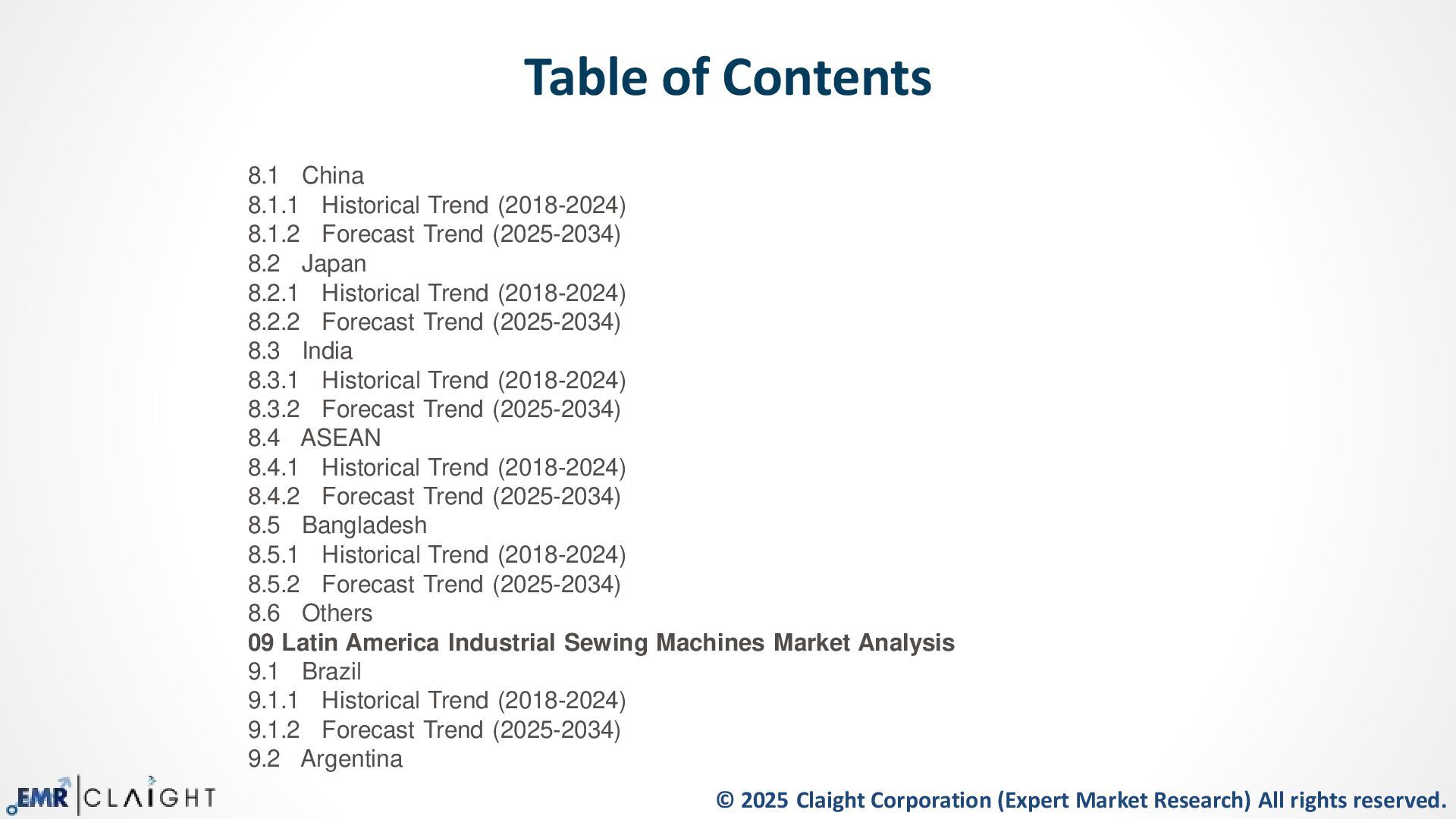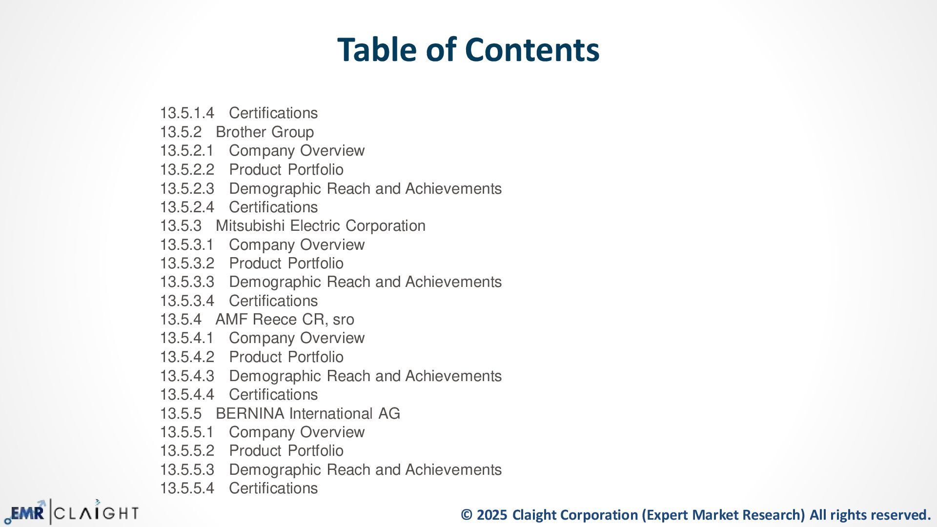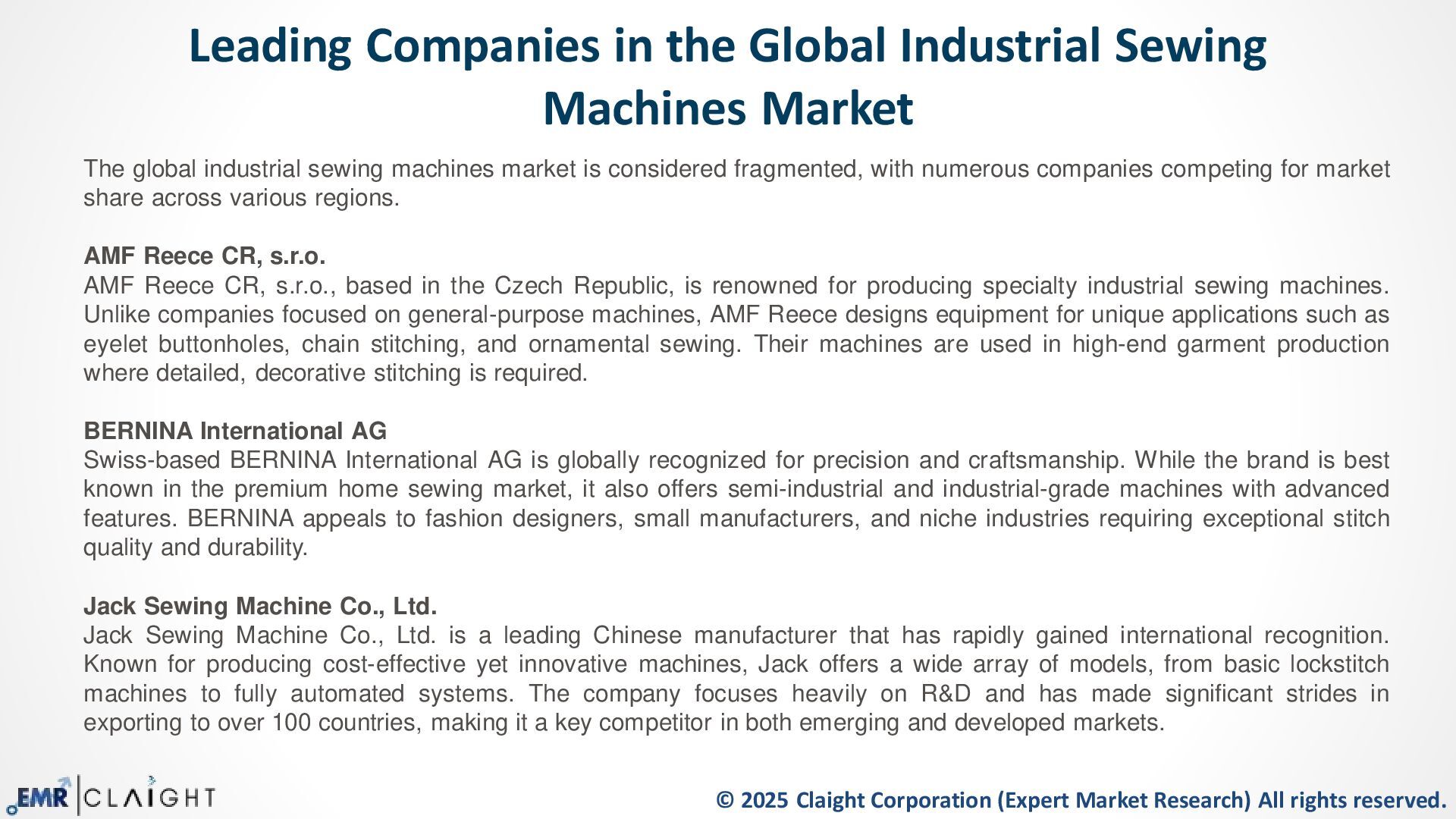 Global Industrial Sewing Machines Market Growth 05 01 This is a sample text. Trade Data Analysis The global industrial sewing machines market is experiencing robust growth, driven by the expansion of the textile and apparel industry, advancements in automation, and rising demand for high-precision sewing technologies. In 2024, the market was valued at approximately USD 3,406.80 million. With the increasing demand for mass production in garment manufacturing and the integration of smart technologies, the market is anticipated to grow at a compound annual growth rate (CAGR) of 5.90% during the forecast period of 2025 to 2034, reaching around USD 6,043.75 million by 2034. Additionally, sectors such as automotive, furniture, and technical textiles are embracing industrial sewing machines for their durability and efficiency, further fueling market expansion. According to Expert Market Research, one of the leading market research and consulting firms, this upward trajectory is supported by technological innovations, such as computer-controlled sewing machines and automation in industrial processes. Their comprehensive reports highlight how emerging economies in Asia-Pacific, particularly China, India, and Bangladesh, are becoming global hubs for textile manufacturing—further fueling the demand for industrial sewing machines. Expert Market Research also notes the growing adoption of eco-friendly production methods and energy-efficient machines as key trends reshaping the market landscape. Moreover, the market is benefitting from increased investment in customized apparel, automotive upholstery, and industrial fabrics. As various industries emphasize speed, consistency, and quality in production, the demand for high-capacity, durable, and versatile sewing machines continues to grow. Government initiatives supporting local textile manufacturing and technological upgrades are also expected to contribute to long-term market growth. With continuous R&D, automation, and strategic partnerships among key players, the global industrial sewing machines market is poised for sustained performance, making it an attractive and resilient investment avenue.