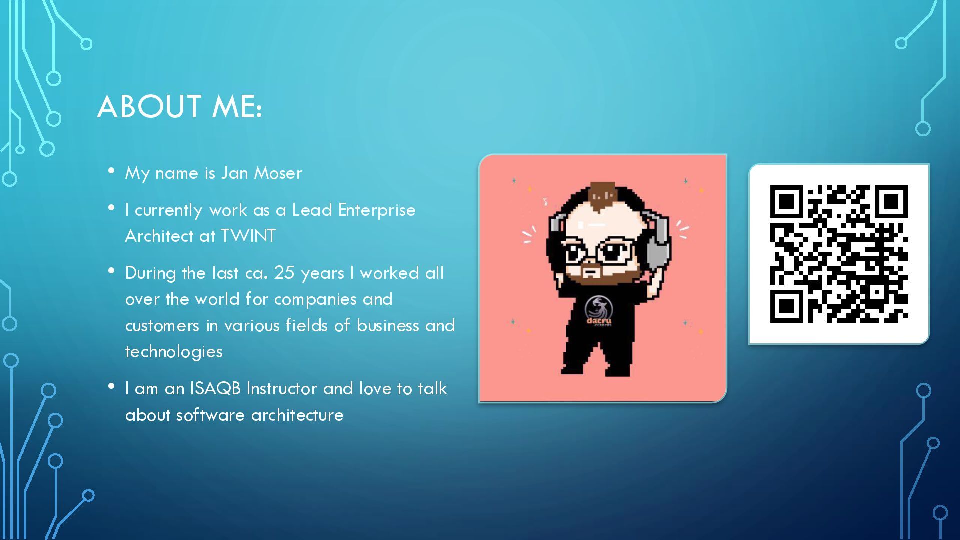currently work as a Lead Enterprise Architect at TWINT • During the last ca. 25 years I worked all over the world for companies and customers in various fields of business and technologies • I am an ISAQB Instructor and love to talk about software architecture