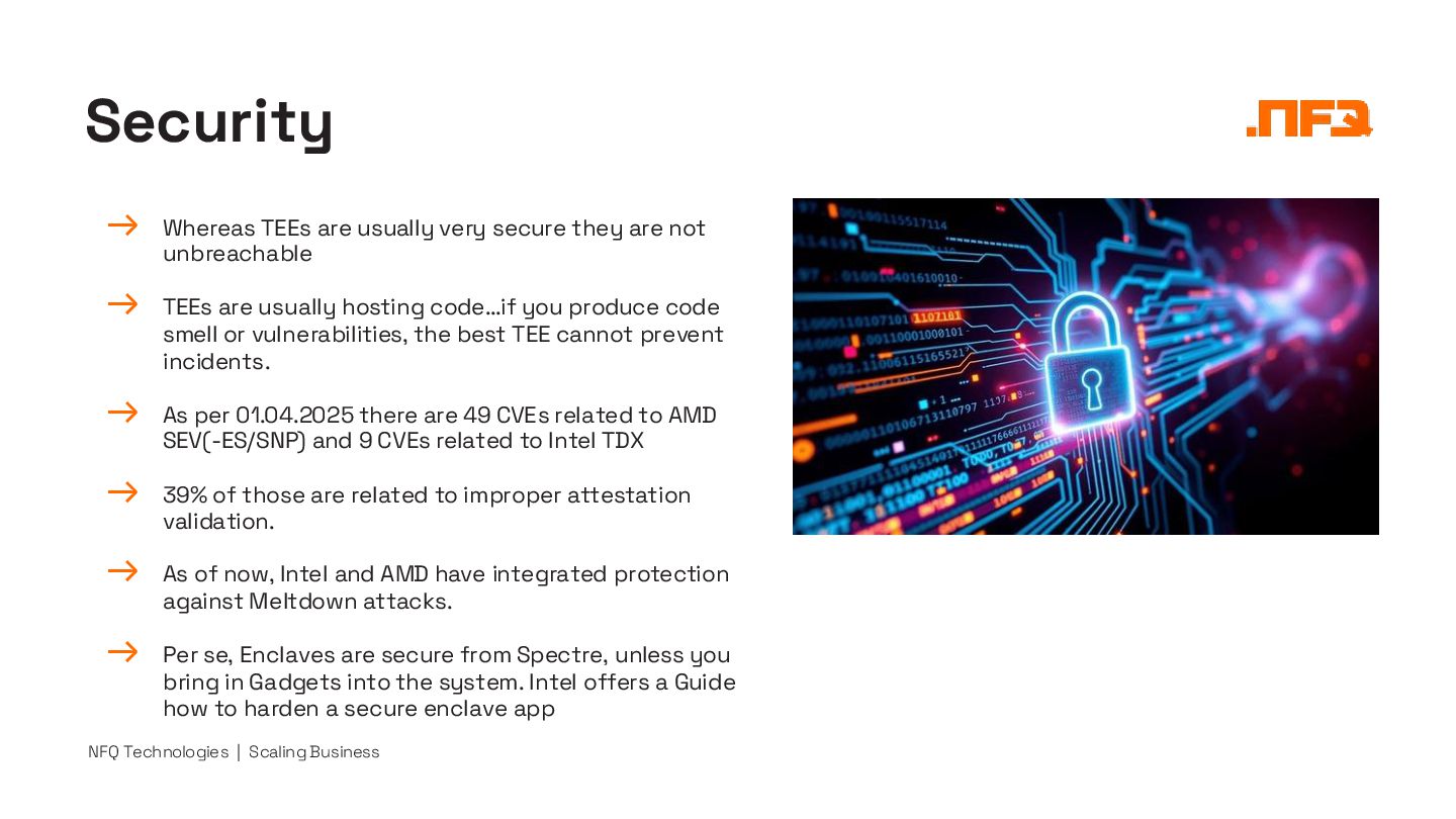 In this talk i give a short overview how confidential computing works, what the involved components are and then focus on an overview specifically to the confidential computing capabilities and services of Microsoft Azure. This talk was held at Sitic Sharing about Zero Trust